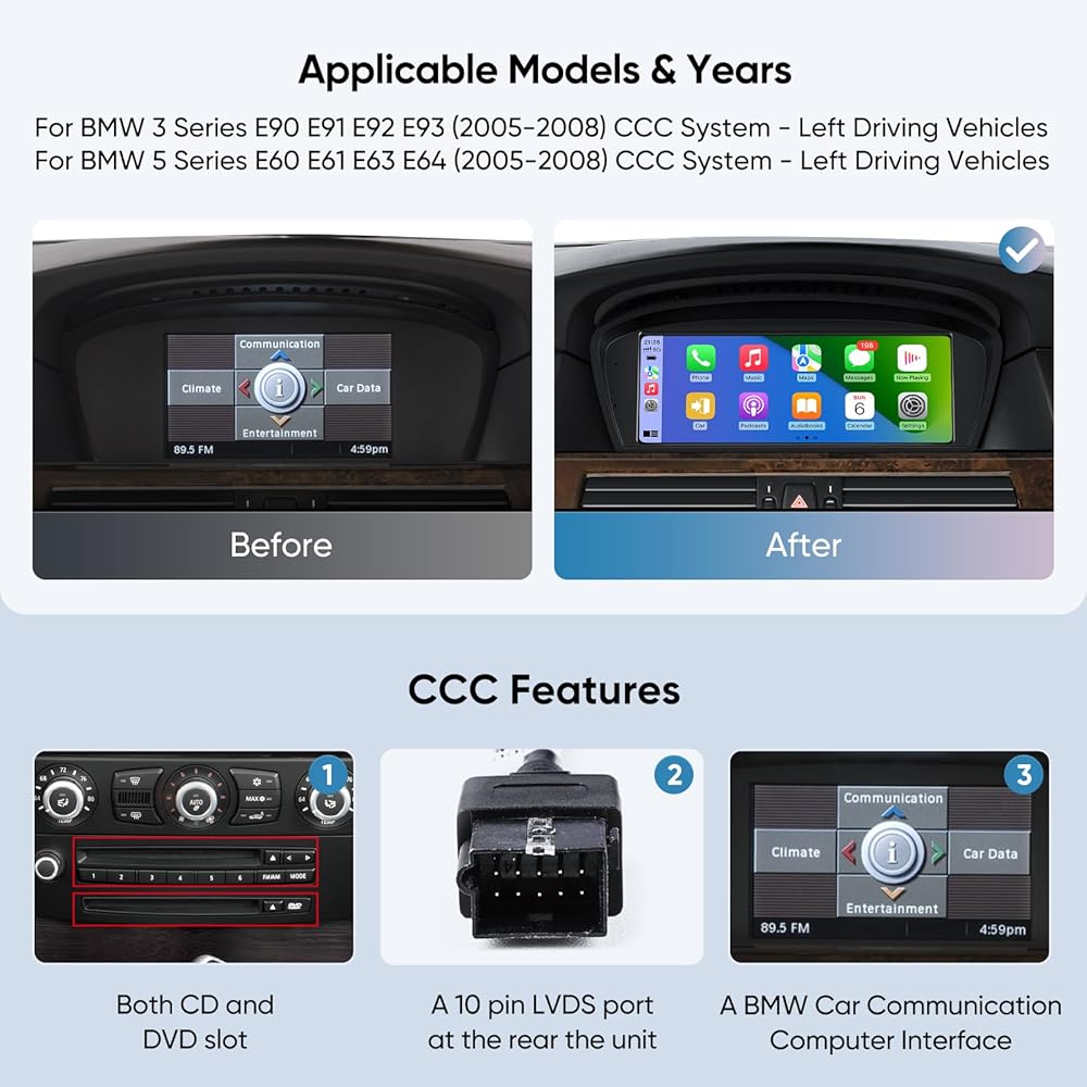• 【الموديلات والسنوات المتوافقة】مصممة حصريًا لنظام BMW 3/5 Series E90 E91 E92 E93 E60 E61 E63 E64 (2005-2008) CCC.