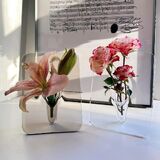 Frame Size - 6"(L) x 2.5"(W) x 7.5"(H), Acrylic flower vase is very popular with fresh flower arrangements or dried floral designs. It can be used for hydroponics of flowers or plants, and it looks beautiful with all types of flowers.