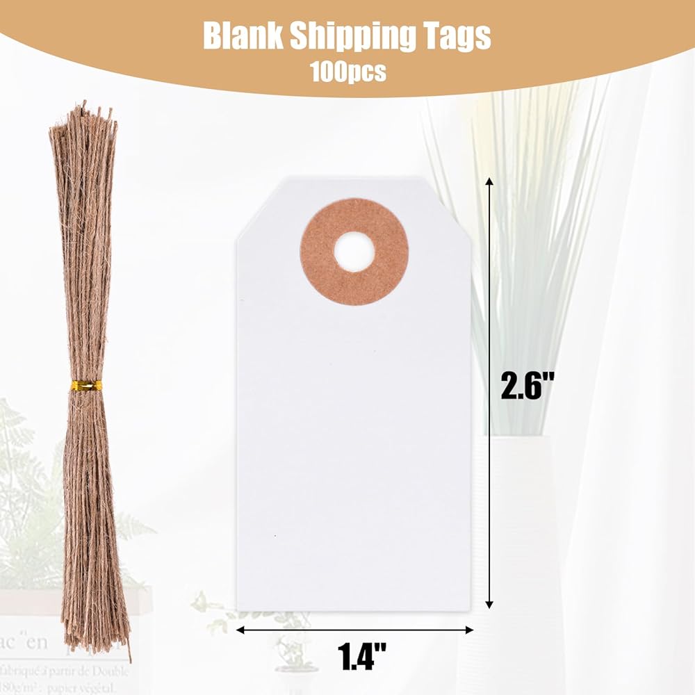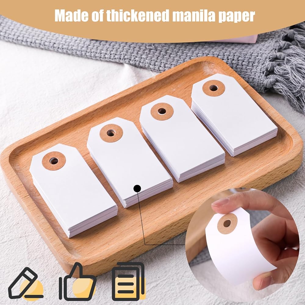 100 قطعة من بطاقات الشحن البيضاء من VGOODALL، علامات مانيلا فارغة مع سلسلة من علامات تعليق الورق لملصقات شحن الأمتعة في المرآب والملابس