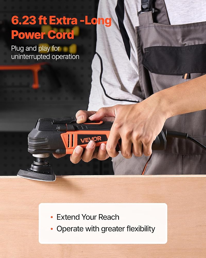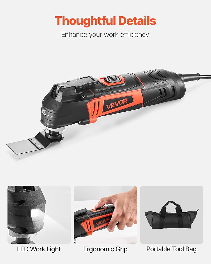 قوة تتجاوز الحدود: مع محرك نحاسي قوي بقدرة 2.5 أمبير وإعدادات بست سرعات تتراوح من 11,000 OPM إلى 22,000 OPM، يمكن لأداتنا المتأرجحة التعامل حتى مع أصعب المهام. تسمح لك زاوية التذبذب البالغة 3.1 درجة بالوصول إلى الزوايا الضيقة والمساحات الضيقة التي لا تستطيع الأدوات الكهربائية الأخرى الوصول إليها، مما ينقل أعمالك اليدوية إلى المستوى التالي!