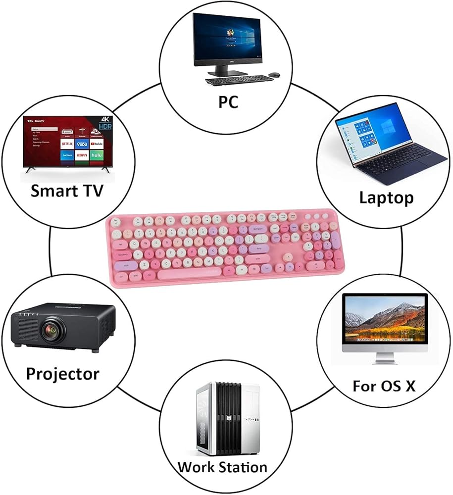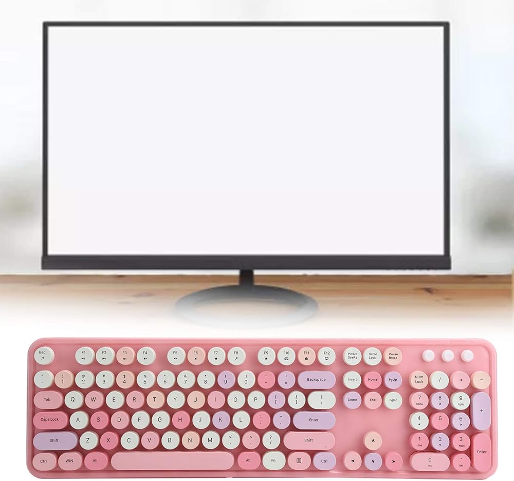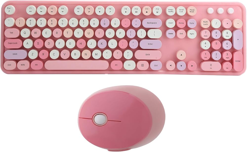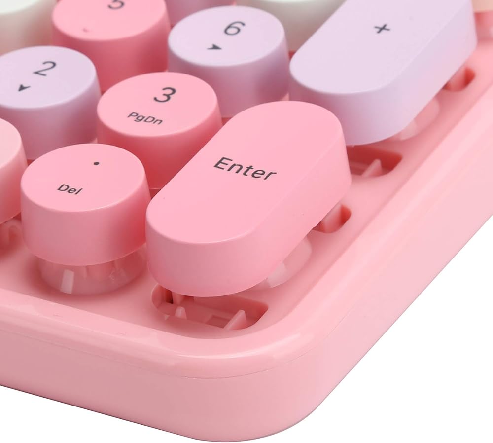 مجموعة لوحة المفاتيح والماوس، لوحة مفاتيح USB مريحة 2.4 جيجا هرتز، لوحة مفاتيح آلة كاتبة دائرية لطيفة، للكمبيوتر المحمول والكمبيوتر المكتبي (وردي ملون)