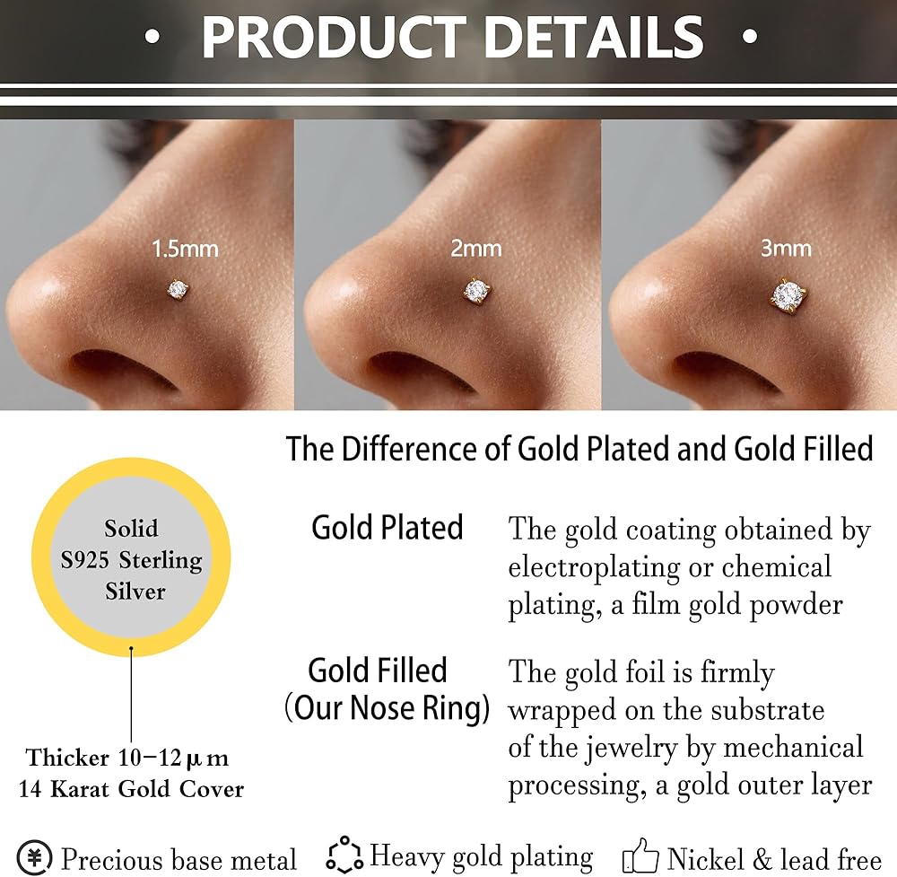 🌟【محشوة بالذهب الحقيقي عيار 14 قيراط】: حلقة أنف من الفضة الإسترلينية مملوءة بالذهب الحقيقي عيار 14 قيراط للحصول على لمسة من مجوهرات الأنف الذهبية الفاخرة والفعالة من حيث التكلفة. لمعان مذهل، لا يصدأ ولا يفقد بريقه، نهاية مصقولة للغاية تحمي ثقوبك من أي إزعاج، أفضل حلقة أنف من الذهب عيار 14 قيراط - مسمار الأنف الرائع
