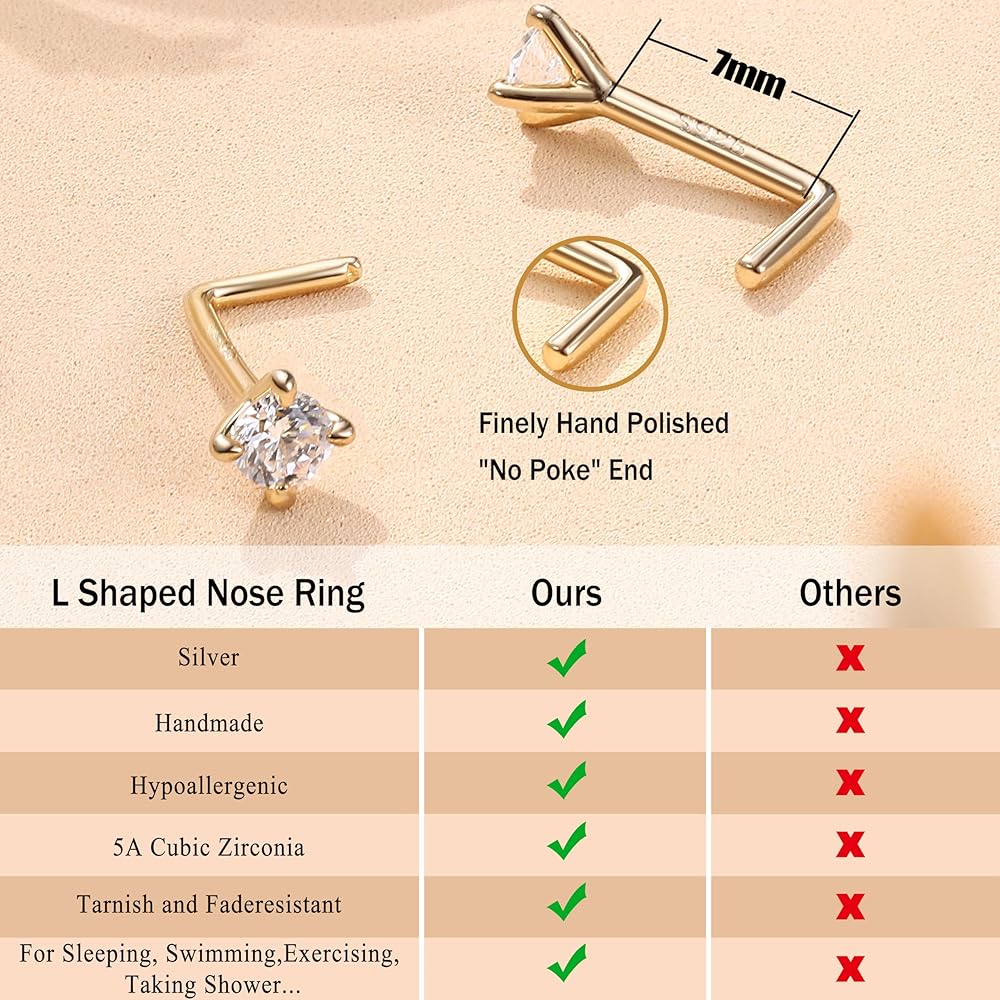 🌟【مادة لا تسبب الحساسية】: حلقات الأنف الذهبية لدينا مصنوعة بدقة من مادة الفضة الإسترلينية عيار 925 الصلبة، وهي لا تسبب الحساسية وخالية من النيكل والرصاص، وهي اختيار مثالي للبشرة الحساسة. مادة S925 الناعمة تسمح لك بالتعديل عند الانحناء - مجوهرات ثقب الأنف الصديقة للبشرة