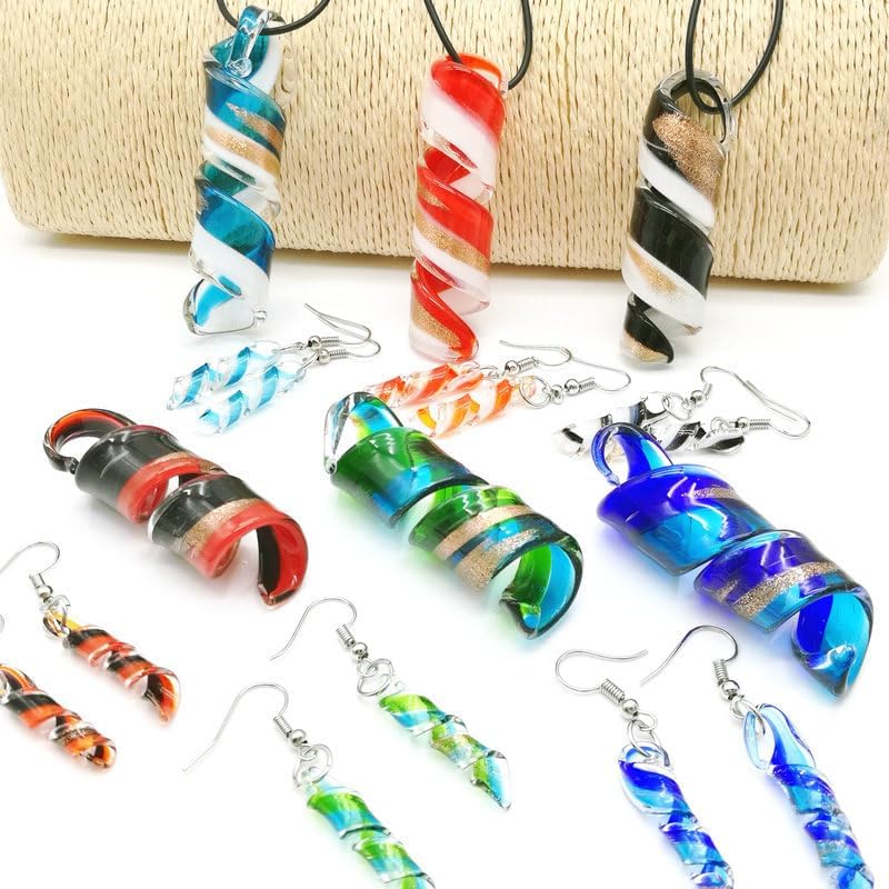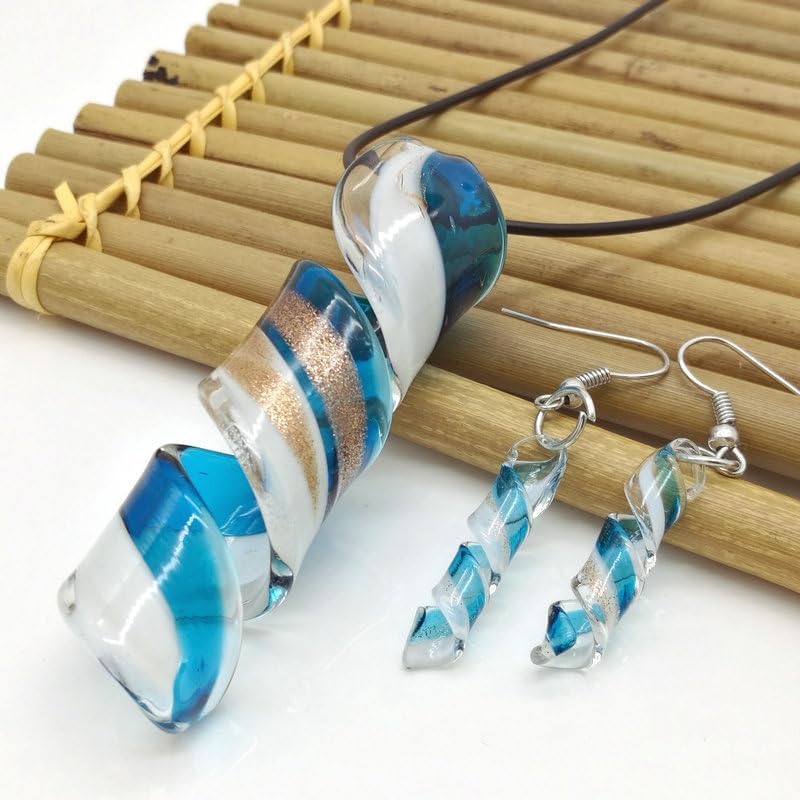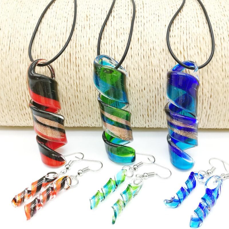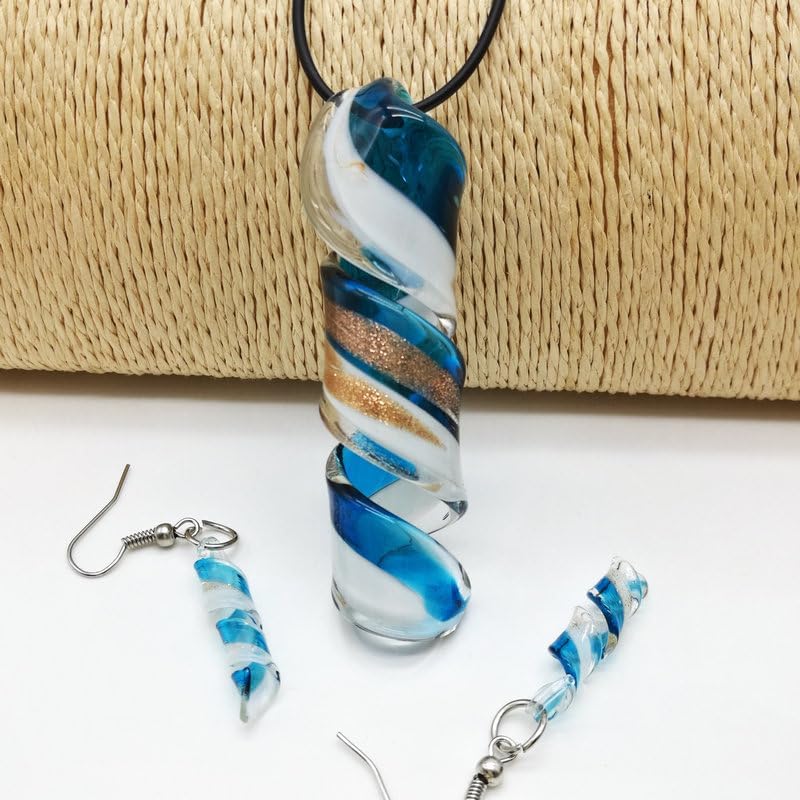 المقاس--الأقراط الزجاجية 1.4*5.5 سم/0.55 بوصة*2.16 بوصة عرضًا وطول إجمالي، قلادة القلادة 3*7 سم/1.18 بوصة*2.75 بوصة، طول السلسلة 48 سم/18.86 بوصة. حجم معقول وخفيف الوزن , مريحة للارتداء طوال اليوم.