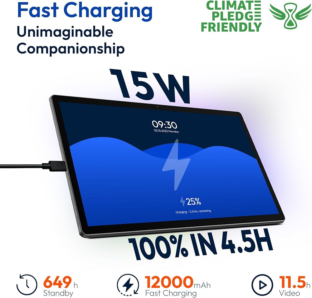 عمر بطارية ممتد 12000 مللي أمبير في الساعة: استمتع بتجربة اتصال سلسة مع دعم wifi 5، مما يضمن الوصول المستمر إلى الإنترنت ومكالمات الفيديو السريعة سواء في المنزل أو أثناء التنقل. تدوم البطارية الكبيرة جدًا التي تبلغ سعتها 12,000 مللي أمبير في الساعة لفترة أطول وتلبي احتياجات كل شيء بدءًا من الألعاب وحتى المهام الاحترافية ومؤتمرات الفيديو، مما يضمن أداءً ممتازًا على مدار فترات طويلة من الاستخدام.