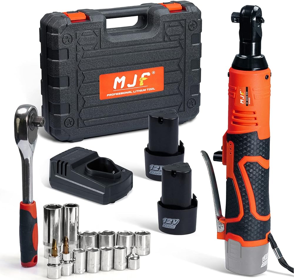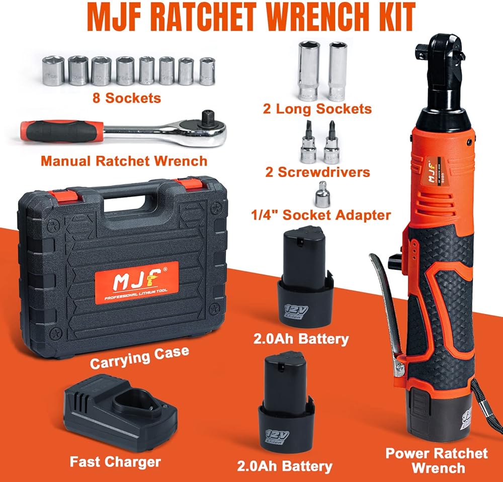 مجموعة مفاتيح ربط السقاطة الكهربائية اللاسلكية MJF، محرك سقاطة كهربائي 400 دورة في الدقيقة 12 فولت مع 13 مقبسًا، بطاريتان ليثيوم أيون بقدرة 2000 مللي أمبير في الساعة وشحن سريع لمدة 60 دقيقة، مشغل سرعة متغيرة
