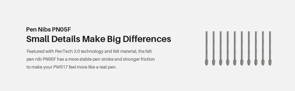 مجموعة من 10 قطع بديلة من HUION PN05F متوافقة مع القلم الرقمي PW517 لعرض القلم Kamvas 12/13/16(2021)/22/22 Plus/24/24 Plus، Kamvas Pro 16(4K)/16 Plus(4K)/24/ 24(4K),200 د.ك