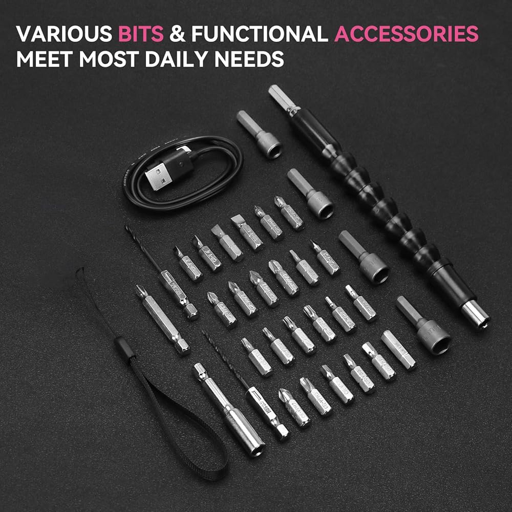 【أداء يدوم طويلاً】مجهزة ببطارية قابلة لإعادة الشحن تبلغ 2000 مللي أمبير/ساعة، يمكن ربط ما يقرب من 250 برغيًا عند شحنها بالكامل. اضغط على الزر لمدة 5-7 ثوان. سيومض مؤشر الضوء لإظهار مستوى البطارية.