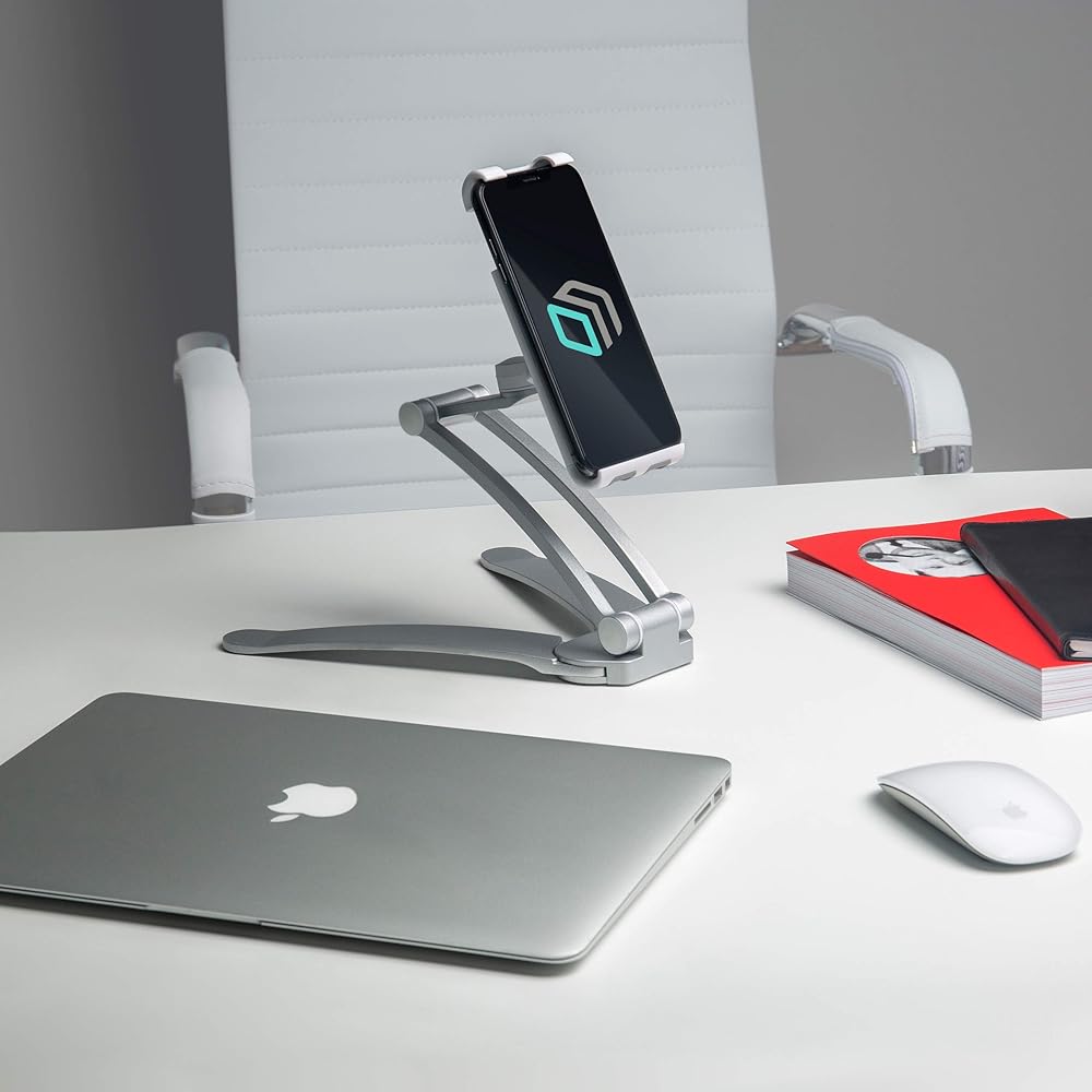 Cell phone and tablet stand is compatible with all modern devices with diagonal from 4.7” to 11” such as Apple iPhone, iPad and all Android smartphones and tablets