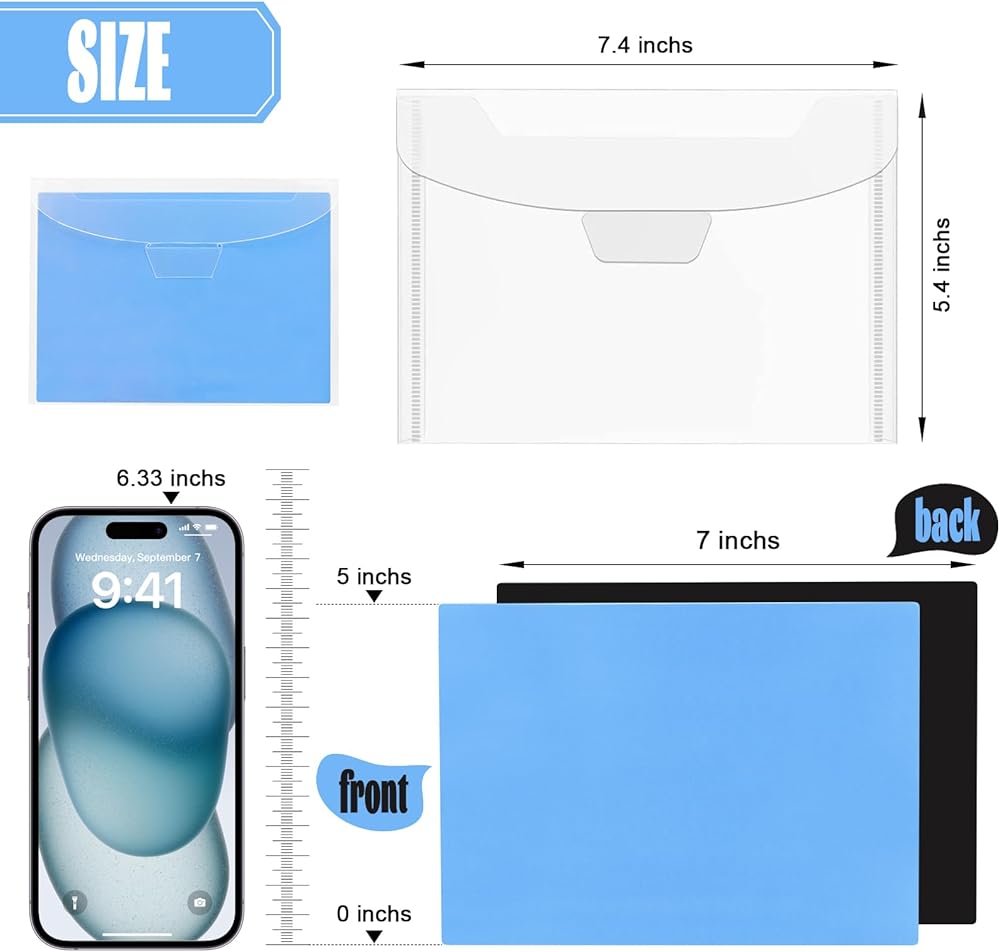 سهلة الاستخدام: يبلغ حجم الجراب الشفاف 7.5 × 5.5 بوصة والورقة المغناطيسية حوالي 7.0 × 5.0 بوصة، وسمك 0.5 مم. الأحجام المناسبة مناسبة ومناسبة لك لاستخدام وتعبئة معظم البطاقات والأشياء الأخرى.