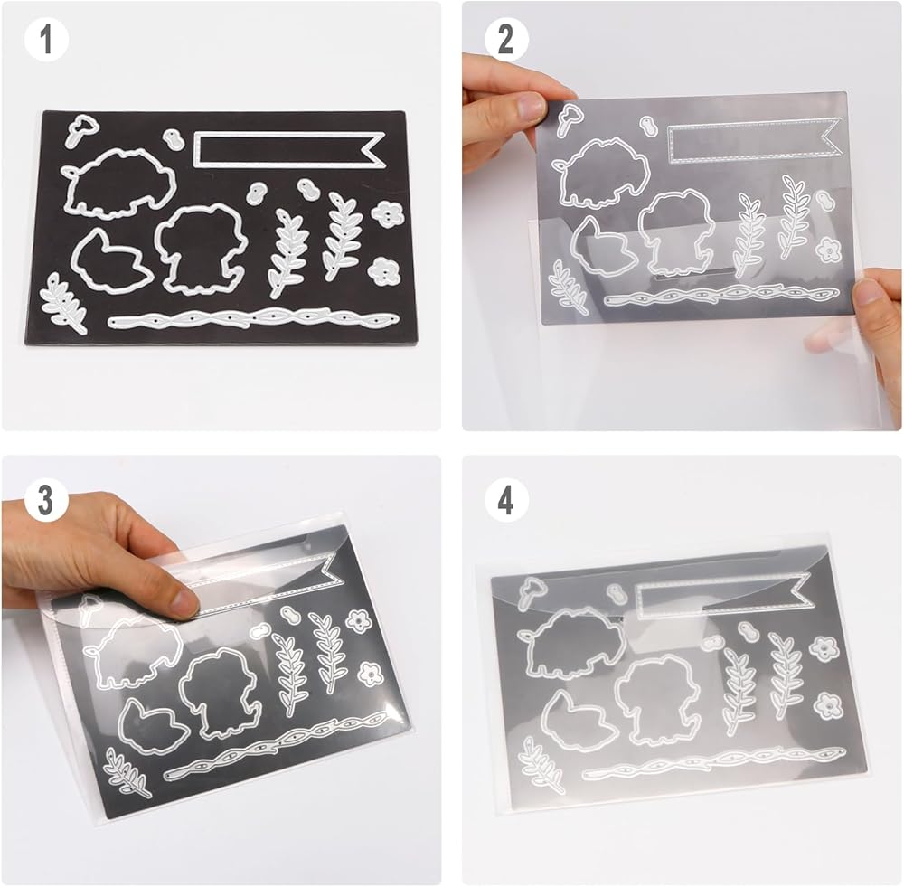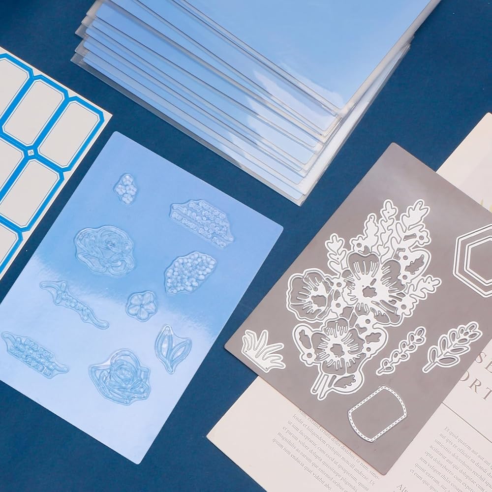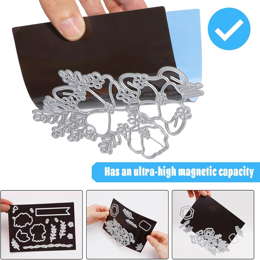 مجموعة تخزين مقطوعة بالقالب: تتضمن المجموعة 8 أظرف تخزين وأوراق مغناطيسية، و16 قطعة من ورق الملصقات الفارغ، مما يوفر طريقة آمنة ومريحة للحفاظ على قوالبك وطوابعك منظمة.