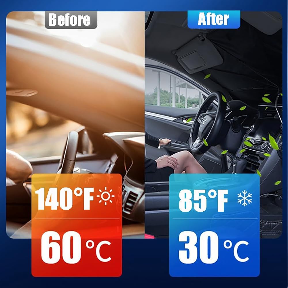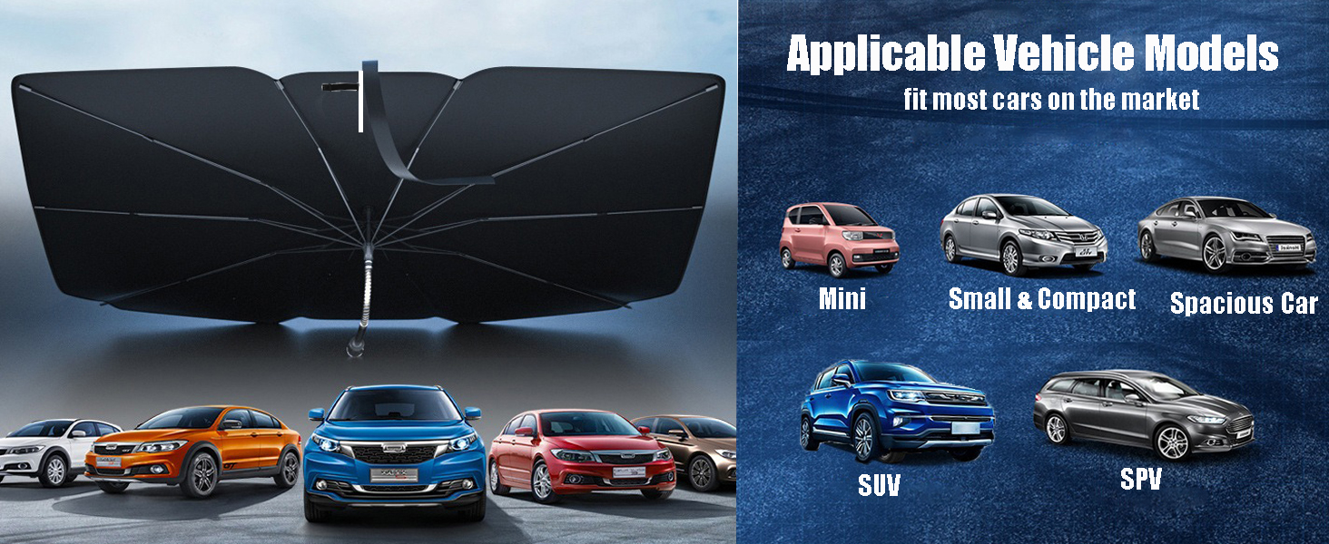 【مناسب عالمي لمعظم السيارات】يحتوي الزجاج الأمامي للسيارة من الشمس على 3 أحجام لتناسب أحجام مختلفة من الزجاج الأمامي للسيارة. يمكن لمظلة الظل الشمسية للسيارة أن تغطي الزجاج الأمامي بالكامل مثل سيارات السيدان الصغيرة/المدمجة/الواسعة، وسيارات الدفع الرباعي، والشاحنات الصغيرة، والشاحنات الصغيرة، وما إلى ذلك. والتي توفر حماية مثالية من أشعة الشمس لسيارتك. 🚫غير مناسب للمركبات على الطرق الوعرة والمركبات الكبيرة والحافلات والمركبات الثقيلة الأخرى.