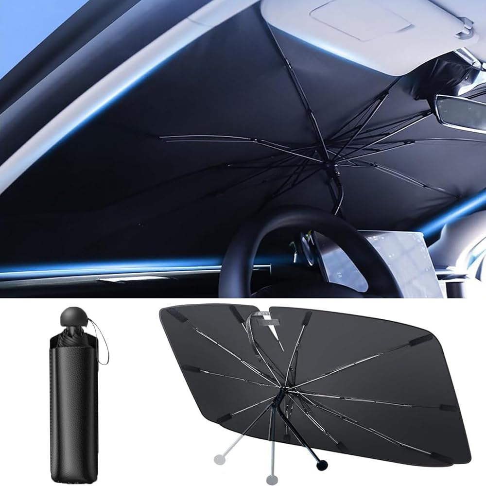 【سهلة التركيب والإزالة】مظلة الشمس للزجاج الأمامي مصممة على شكل مظلة، سهلة الفتح والسحب، ويمكن طيها بحجم صغير عند عدم الاستخدام، وأسهل في التعامل معها من ظلال الشمس الأخرى. يأتي مع غطاء من جلد البولي يوريثان للتخزين مما يجعله أكثر أناقة. الحل الأكثر ملاءمة لتظليل الزجاج الأمامي في أيام الصيف الحارة الطويلة!