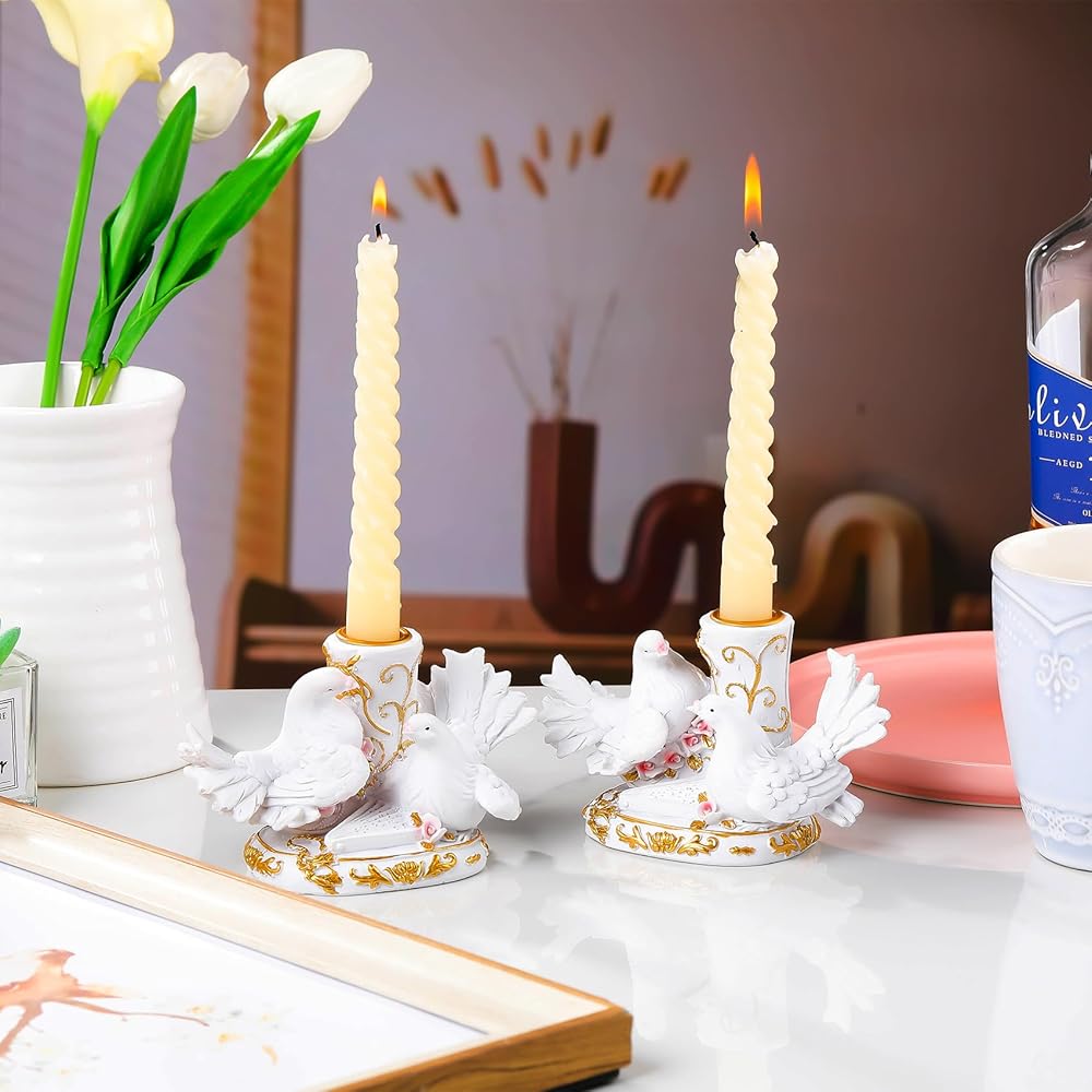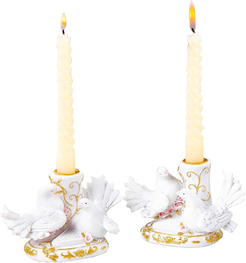 قطعتان من الشمعدان الديني للطيور الحمائم للشموع المستدقة، حامل شموع مستدقة دينية، هدايا كاثوليكية للنساء، مجموعة شمعدانات ديكور لقطع مركزية للطاولة ومنزل الزفاف