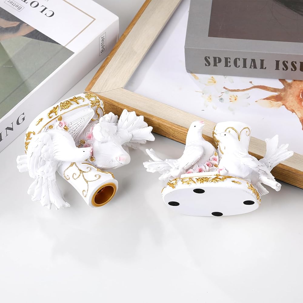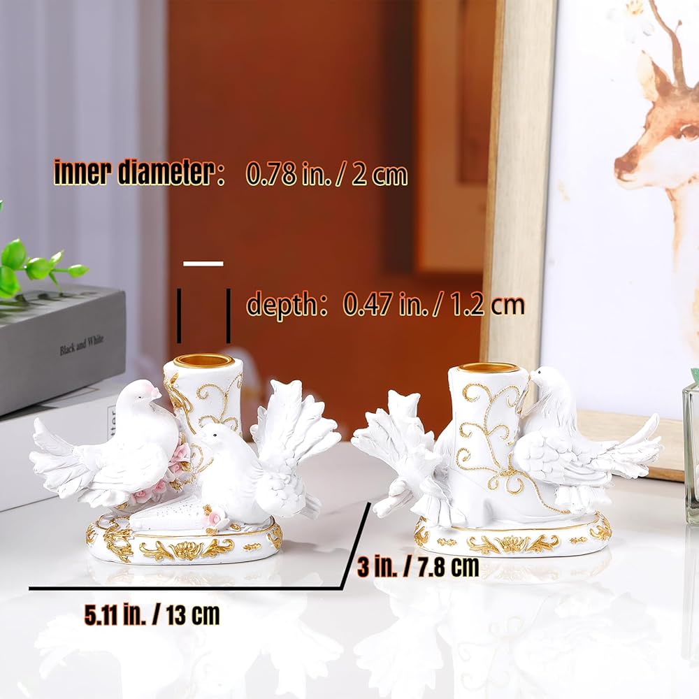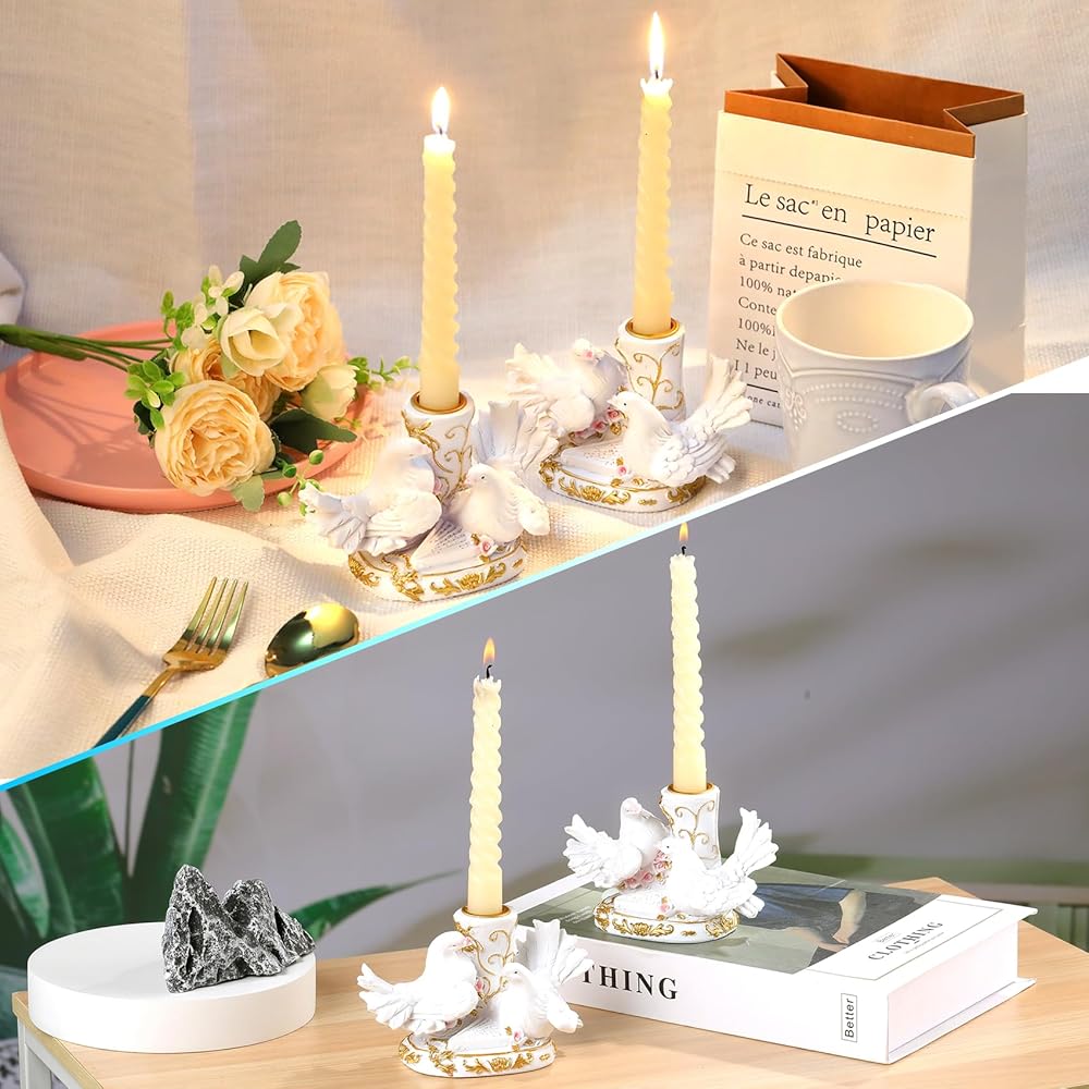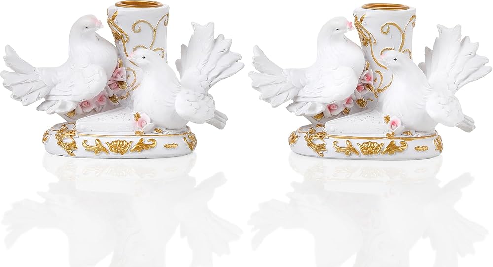 • Quality Material: Doves birds candlecandlestick is constructed from quality resin, with robustness and lightweight characteristics, making it suitable for long term use; Lifelike appearance adds to the aesthetic appeal, and it is also odorless and unaffected by temperature variations.