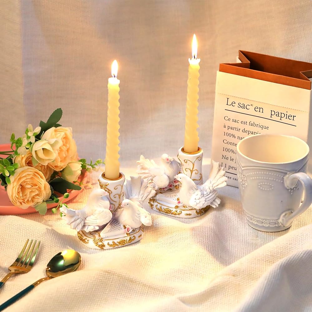 • Unique Candle Holders: In a dim environment, two dove candle holders with swaying lights are like doves bringing light, bringing warmth and hope to people. This dove candlesticks can be used for candlelight dinner between couples, anniversary dinner, family gatherings, and other occasions that need a romantic atmosphere, giving you a unique romantic experience.