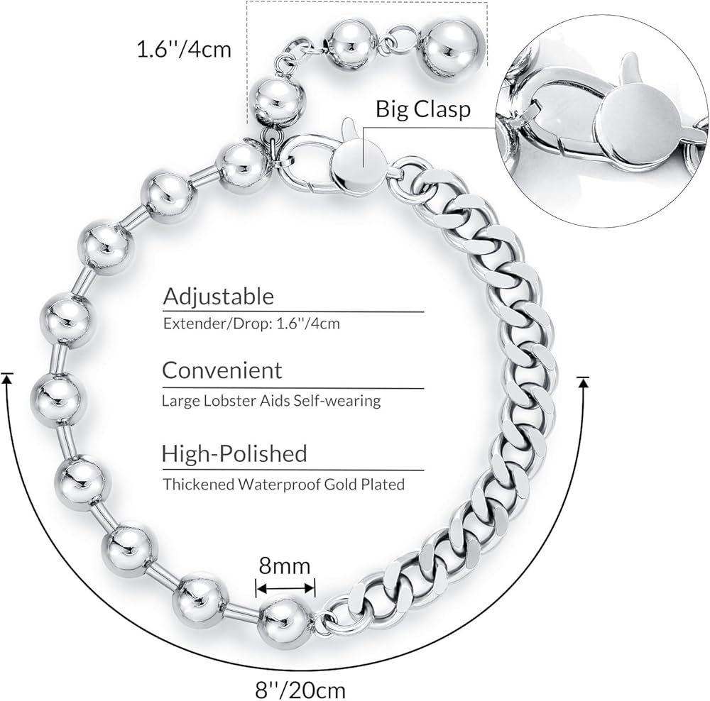 ملابس مريحة: مع سلسلة خرز مقاس 1.6 بوصة تعمل كموسع بالإضافة إلى قلادة، تتأرجح بخفة أثناء الحركة. التصميم القابل للتعديل يناسب أحجام المعصم المختلفة، كما يساعد مشبك جراد البحر الكبير على الارتداء الذاتي.