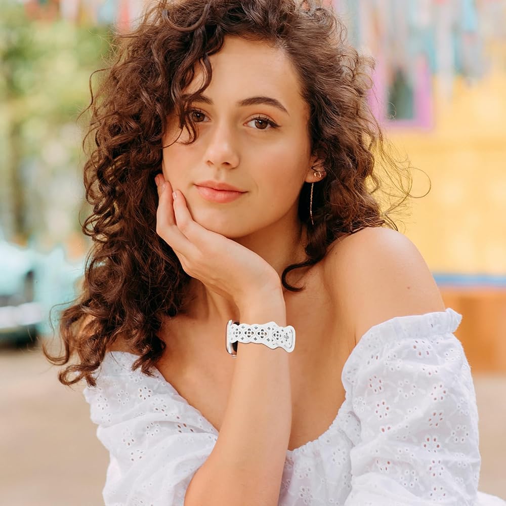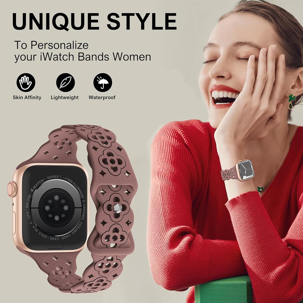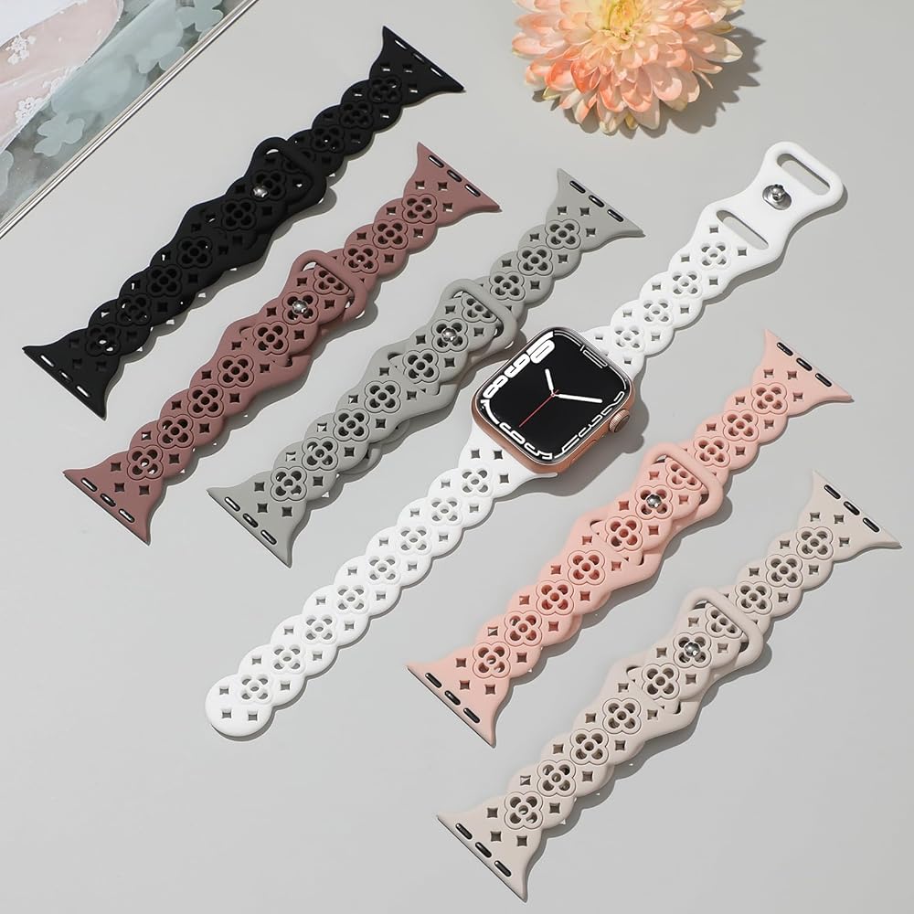 🍀【نماذج متوافقة】تتوافق أحزمة iwatch المصنوعة من السيليكون من الدانتيل من YAXIN للنساء مع سوار ساعة Apple 38 مم 40 مم 41 مم 42 مم 44 مم 45 مم 49 مم، مناسبة لسلسلة iWatch 9، سلسلة iWatch 8، السلسلة 7، السلسلة 6، السلسلة SE، السلسلة SE2، السلسلة 5 /4/3/2/1.