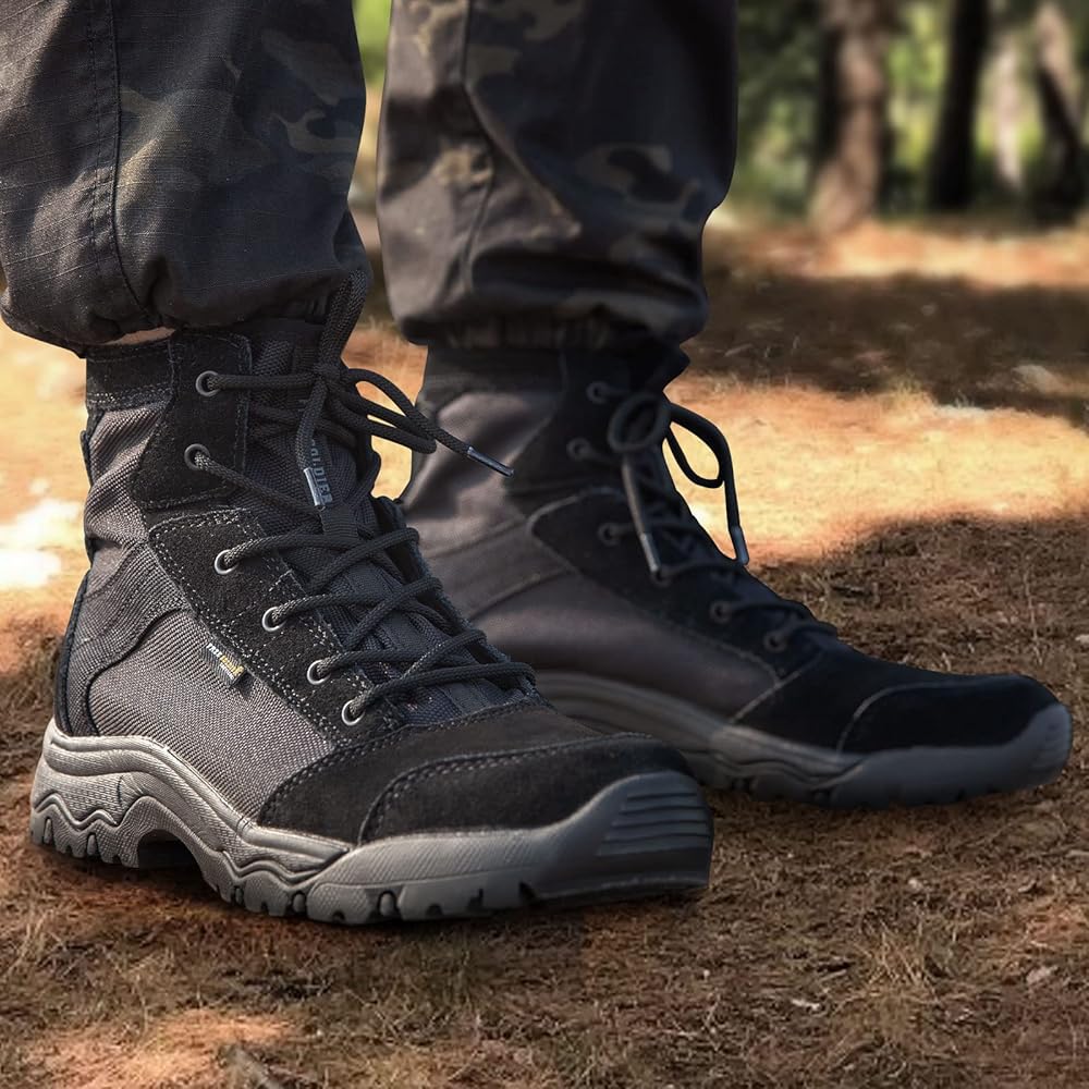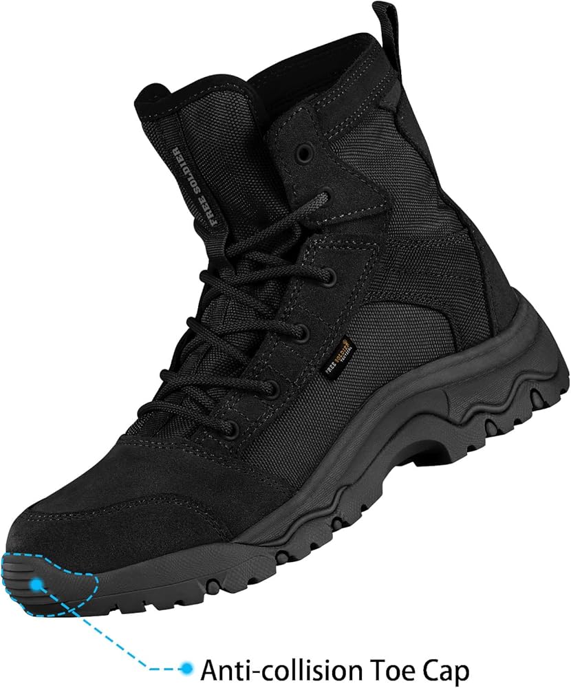 جندي مجاني مقاوم للماء للتنزه سيرًا على الأقدام أحذية رجالية تكتيكية مقاس 7 بوصات أحذية عسكرية خفيفة الوزن أحذية صحراوية قابلة للتنفس (أسود 9.5)