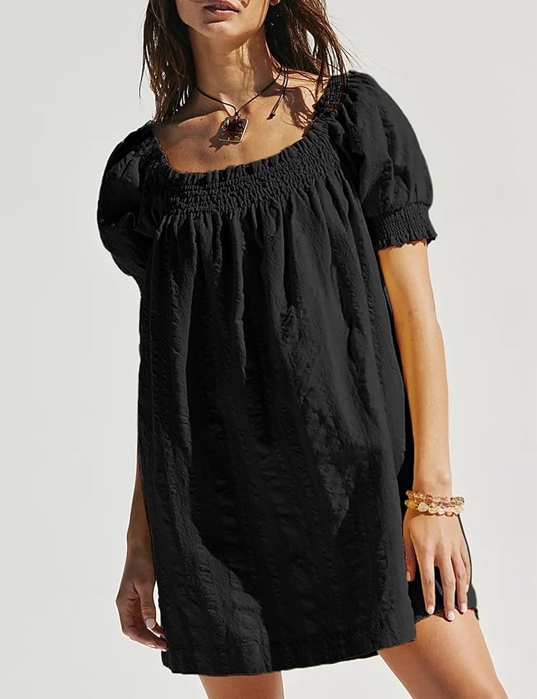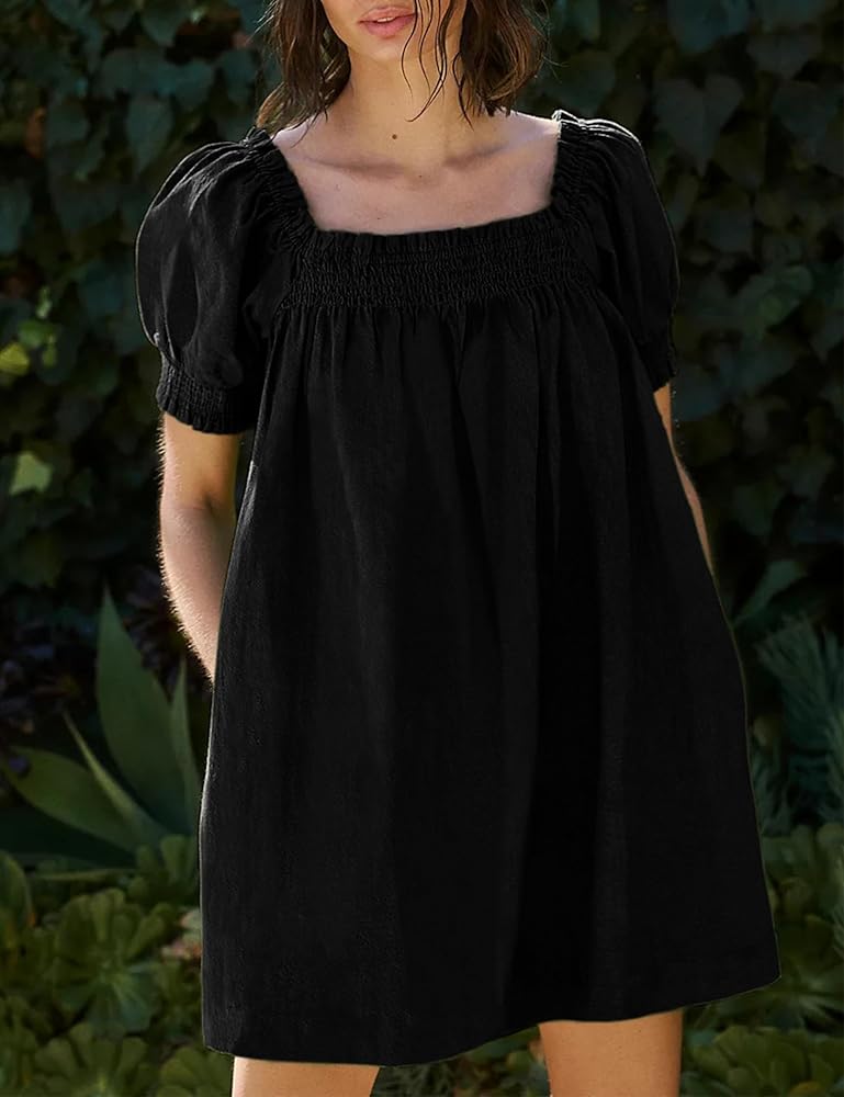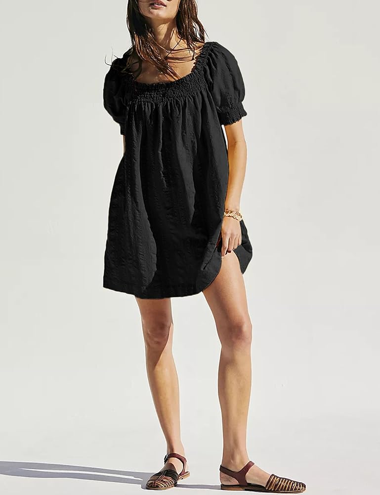 - مصنوع من مواد مسامية وخفيفة الوزن، هذا الفستان القصير مثالي للصيف الحار والرطب