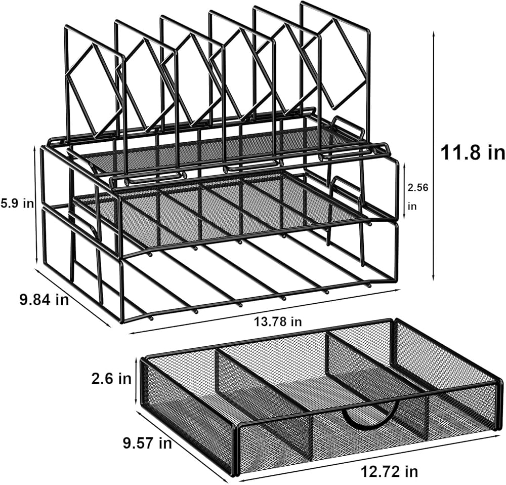 🗂️أكثر متانة واستقرارًا: تنظيم مكتبنا مصنوع من الفولاذ الفاخر ولا يصدأ أبدًا. تحتوي منظمات المكتب وملحقاتها على 4 قواعد مطاطية لضمان لمسة نهائية غير قابلة للانزلاق.