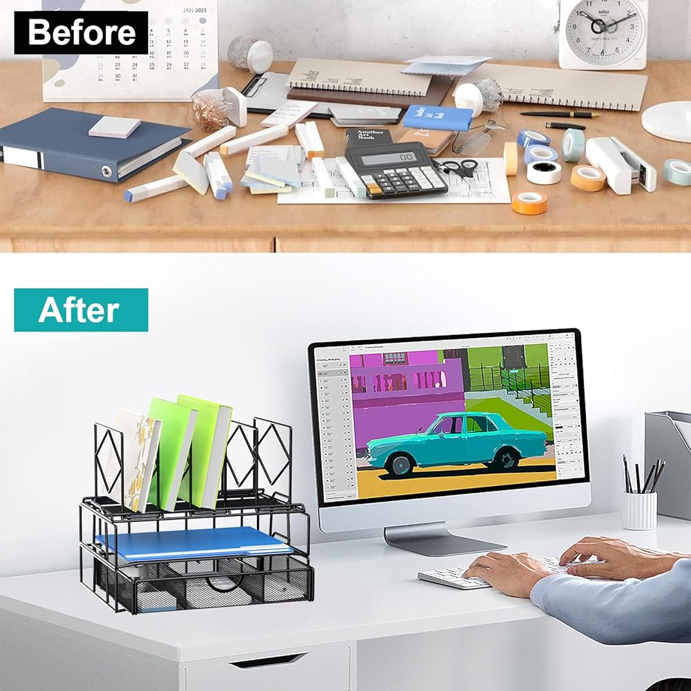 🗂️قم بتزيين مساحة العمل الخاصة بك: شبكة متينة وأنيقة تخلق مساحة أكبر على مكتبك بينما تبدو جيدة.