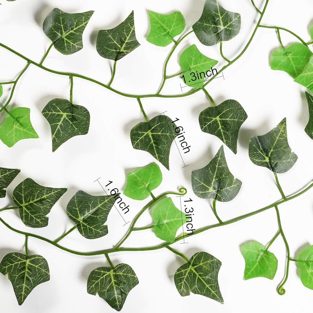 يبلغ طول كل كرمة لبلاب حوالي 7.6 قدم، إجمالي 91 قدمًا، وقطر 100 ورقة حوالي 1.3-1.6 بوصة. تأتي مع 12x كرمة اللبلاب الاصطناعي، وأوراق حرير الكرمة البلاستيكية. (ملاحظة: يحتوي المنتج على 12 خصلة فردية، ولكن معبأ في حقيبة. .)