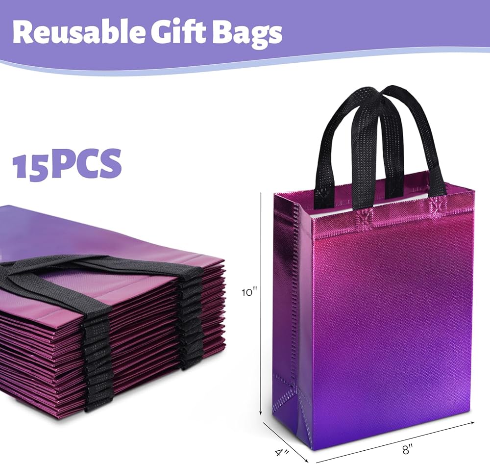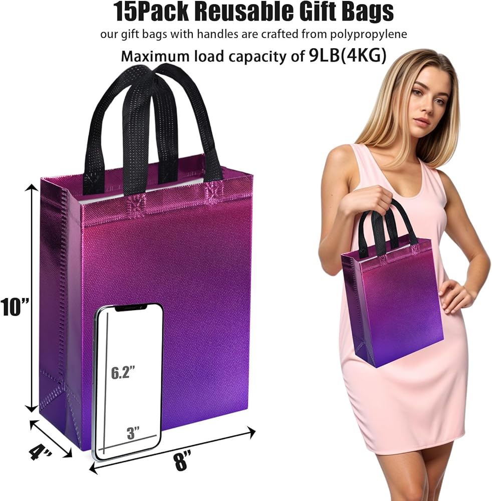 تتضمن العبوة - 15 قطعة من الحقائب غير المنسوجة باللونين الأصفر والأحمر المتدرج مقاس 8 × 4 × 10 بوصة، مما يوفر حجمًا وكمية كبيرة لمشاركتها مع الأصدقاء أو تقديمها كهدية لأحبائك.