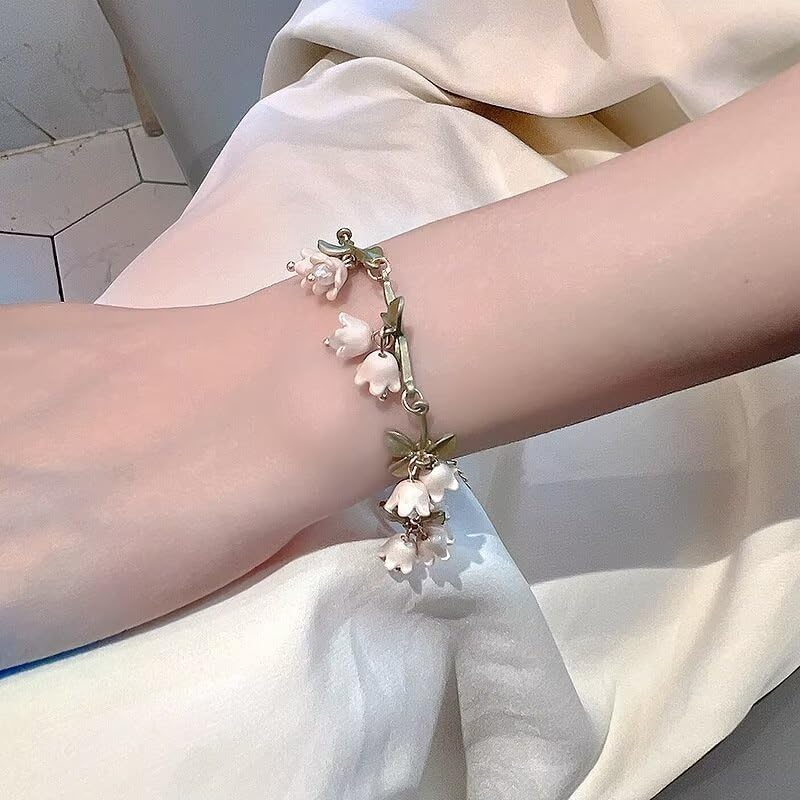 LILY OF THE VALLEY BRACELET: Add a finishing touch to your look with the Rose Bluebell Bracelet. Featuring a blend of roses and bluebells, this bracelet complements the floral theme of the set, adding a pop of color and charm to your wrist.