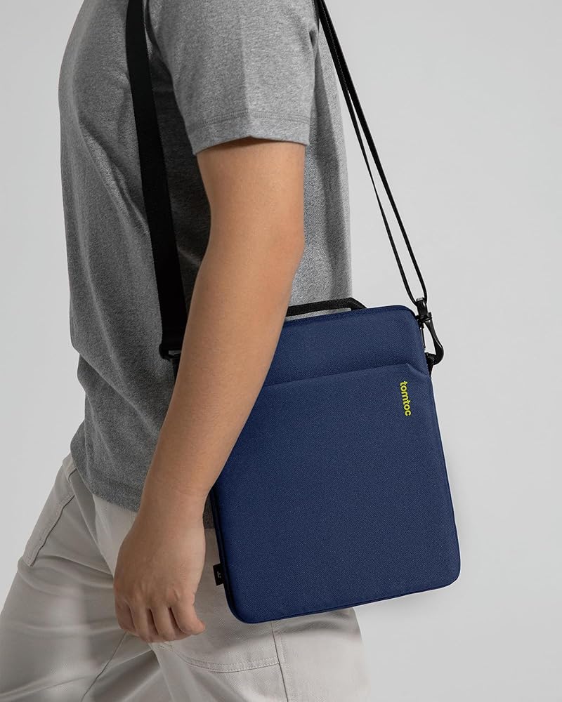 مدمجة ونحيفة: تتميز بتصميم بسيط وموجز ومفهومي مع حزام كتف قابل للإزالة، حقيبة الكتف اللوحية Tomtoc Light-B19 Slim نحيفة وخفيفة الوزن، مما يسمح لك بحمل جهازك بسهولة دون خلق حجم زائد وتخزينه بشكل مريح في حقيبة أخرى، حقيبة ظهر، أو حقيبة