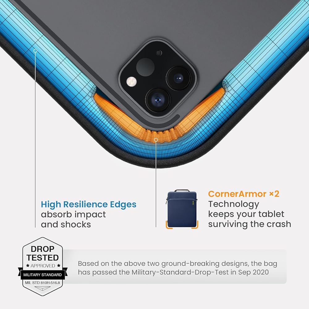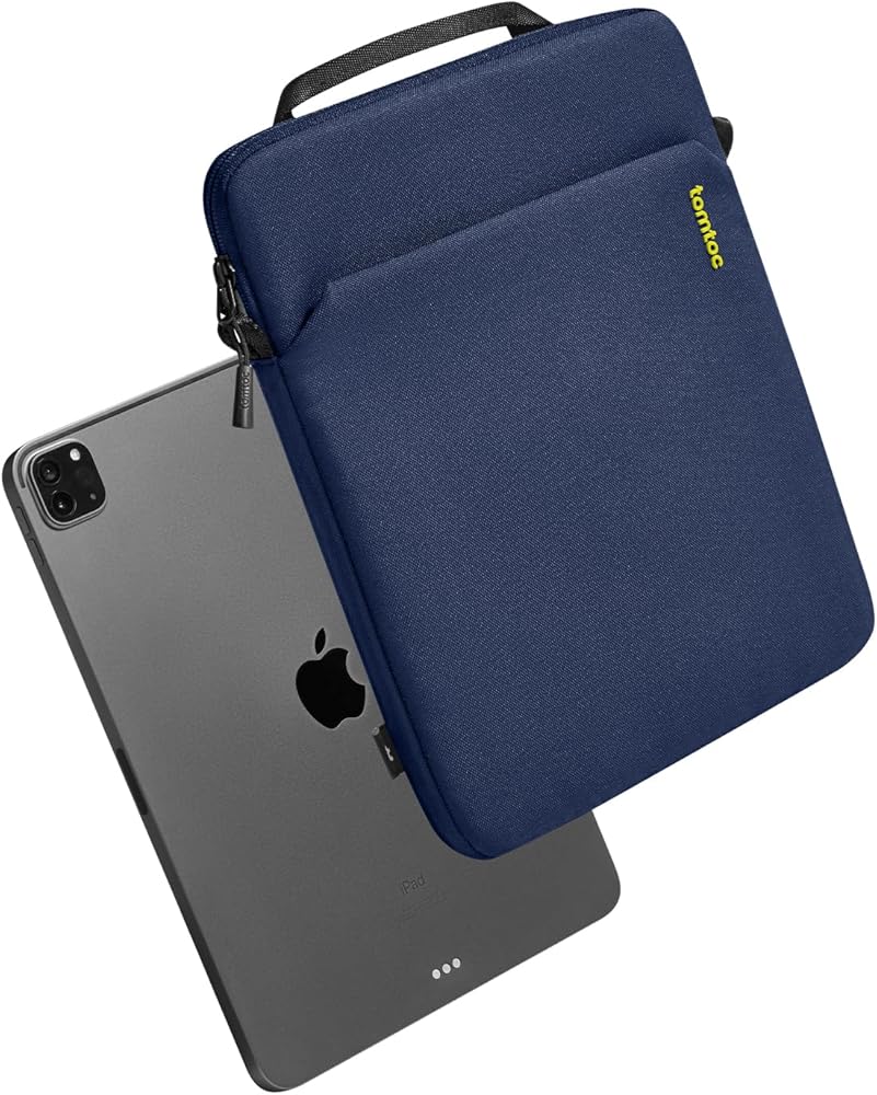 حماية موثوقة ومنظمة جيدًا: يوفر حماية مثالية مع بطانة ممتصة للصدمات وطبقة خارجية مقاومة للماء للحماية من الخدوش والأوساخ والمطر. يتميز بمساحة إضافية للملحقات مثل الشواحن والكابلات وقلم Apple Pencil وسماعات الأذن