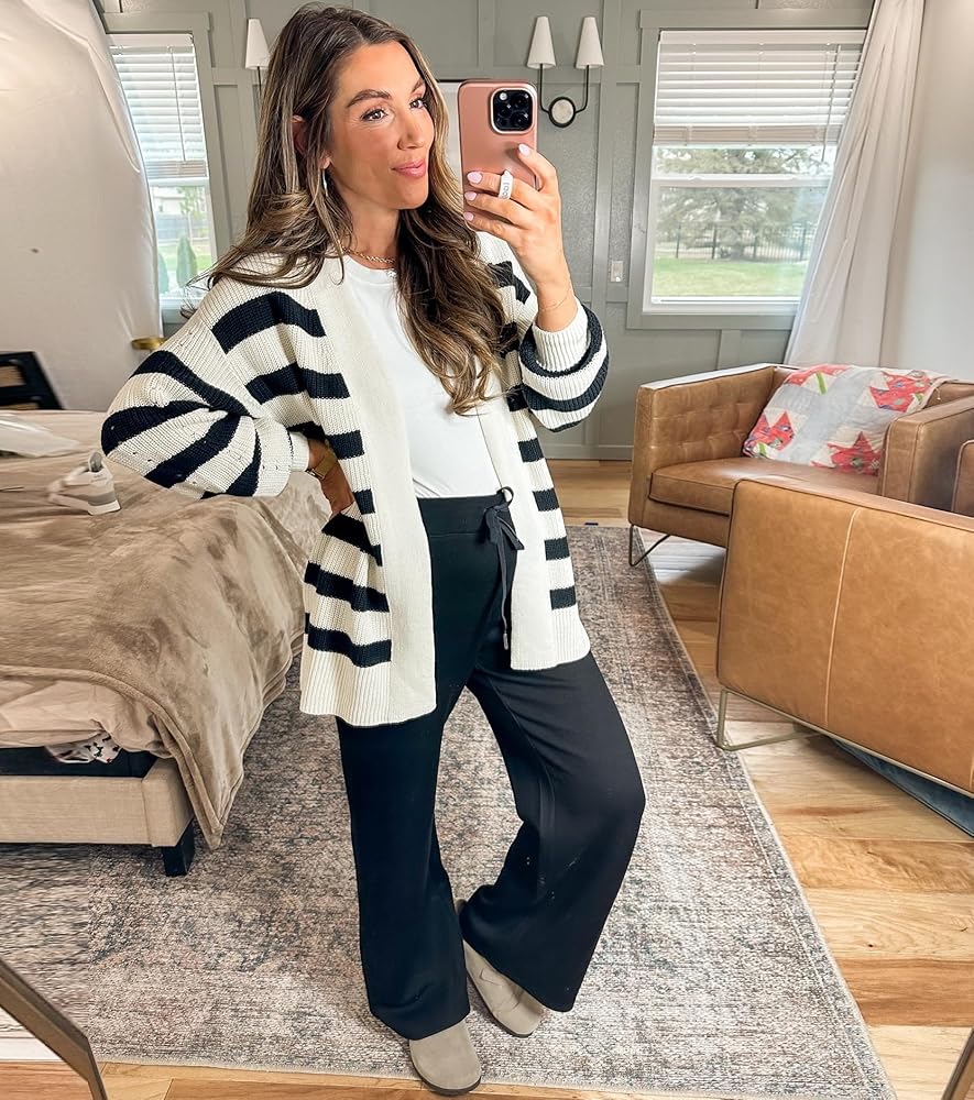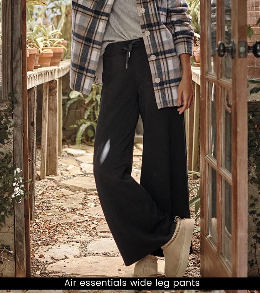 بنطلون رياضي Air Essentials واسع الساق للسيدات عالي الخصر مع جيوب جانبية (أسود-M)