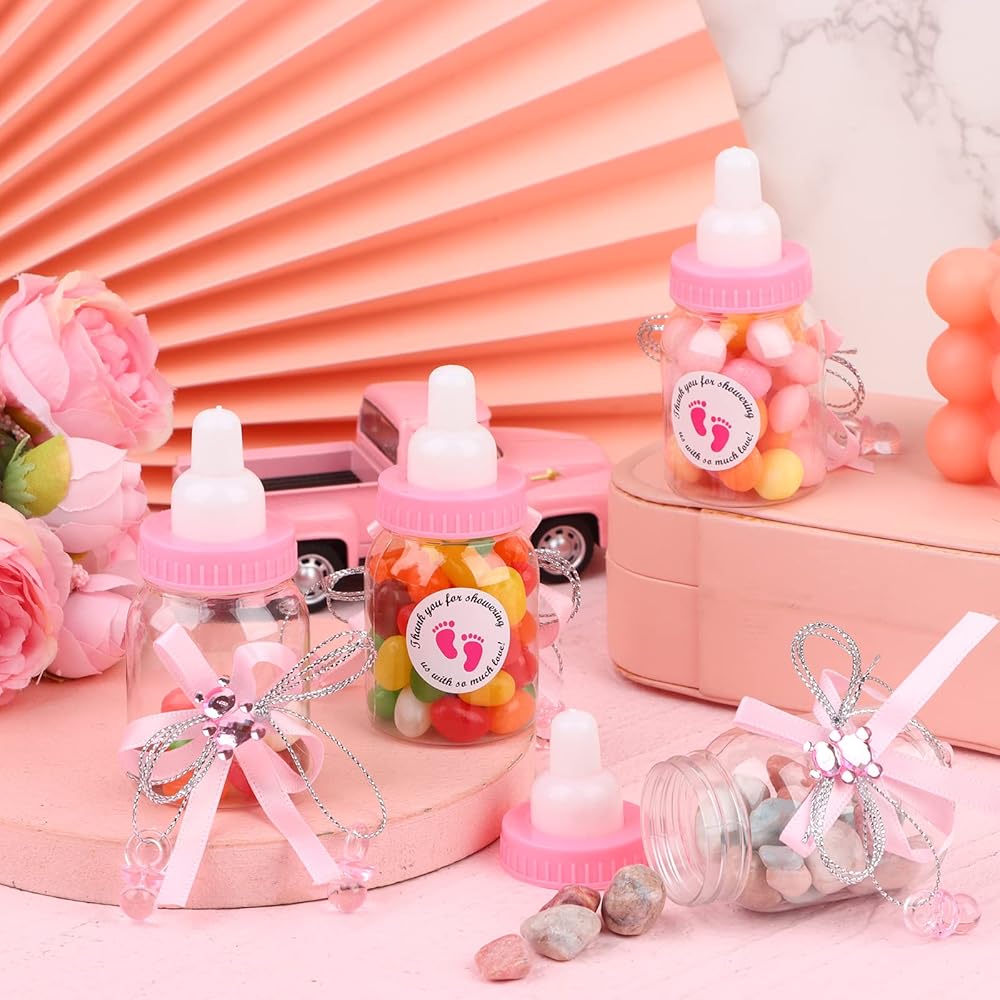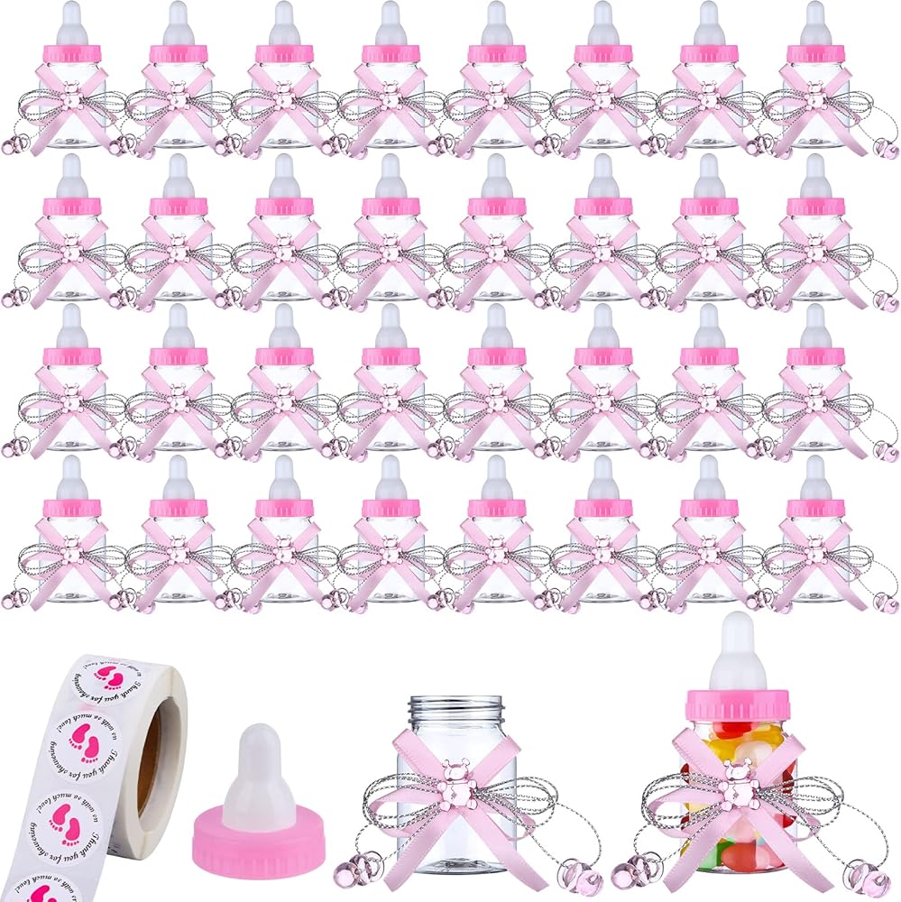 تشمل العبوة: سوف تحصل على 62 قطعة من هدايا زجاجات الأطفال و500 لاصقة شكرًا لك على الاستحمام لحفلات استقبال المولود الجديد، وهي كافية لتلبية احتياجات تزيين حفلات استقبال المولود الجديد