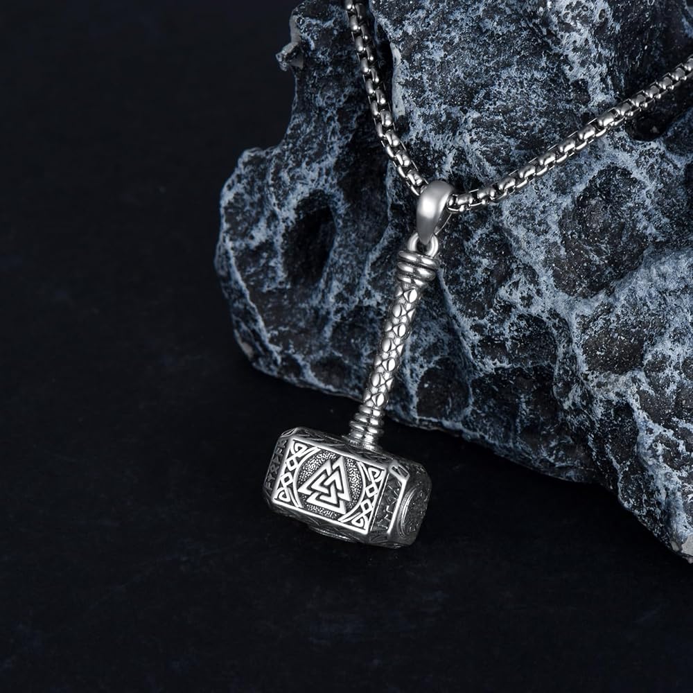 ★ THOR HAMMER ★ Mjolnir، المعروف بمطرقة ثور، هو مطرقة إله الرعد ثور في الأساطير الإسكندنافية. تتميز قلادة Thors Hammer هذه المرصعة باللون الفيروزي البيضاوي بأنها رائعة وفريدة من نوعها. مع قلادة الجرة، يمكن أيضًا أن تكون قلادة تذكارية للرماد. احمل من تحب المفقود معك!
