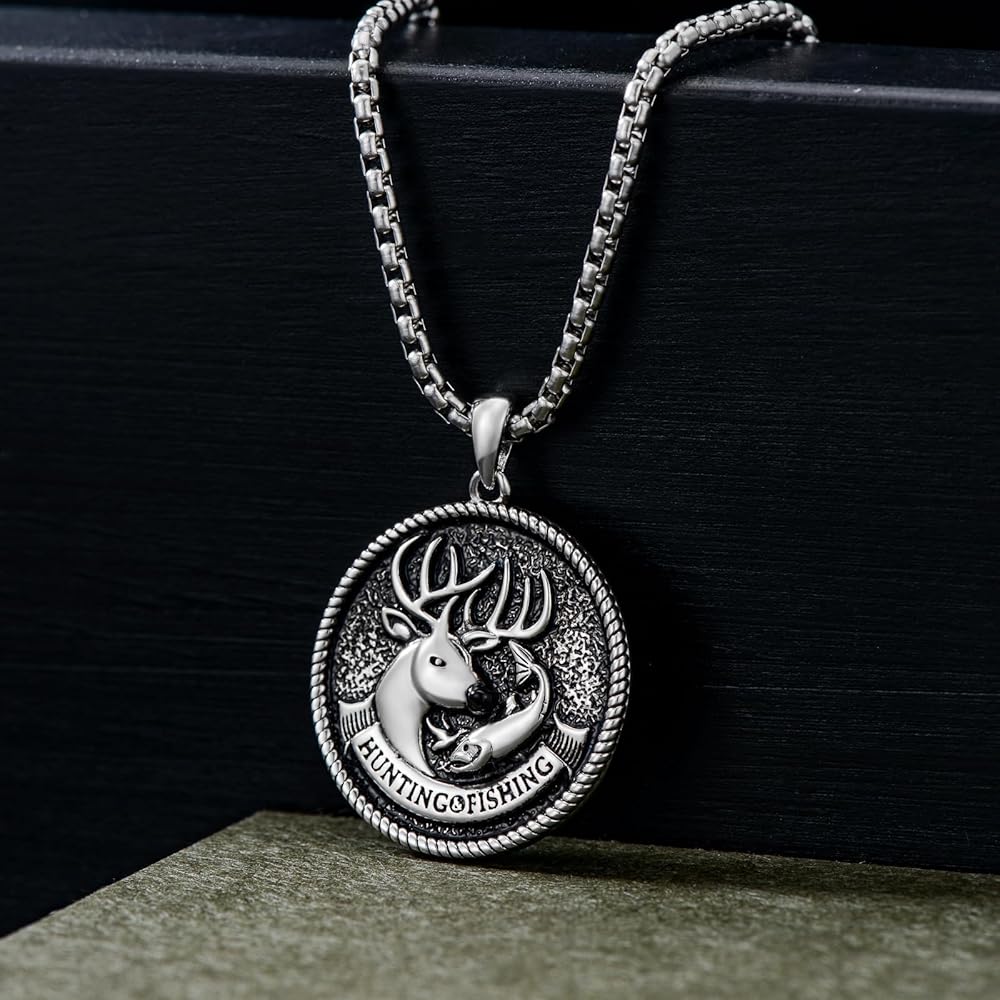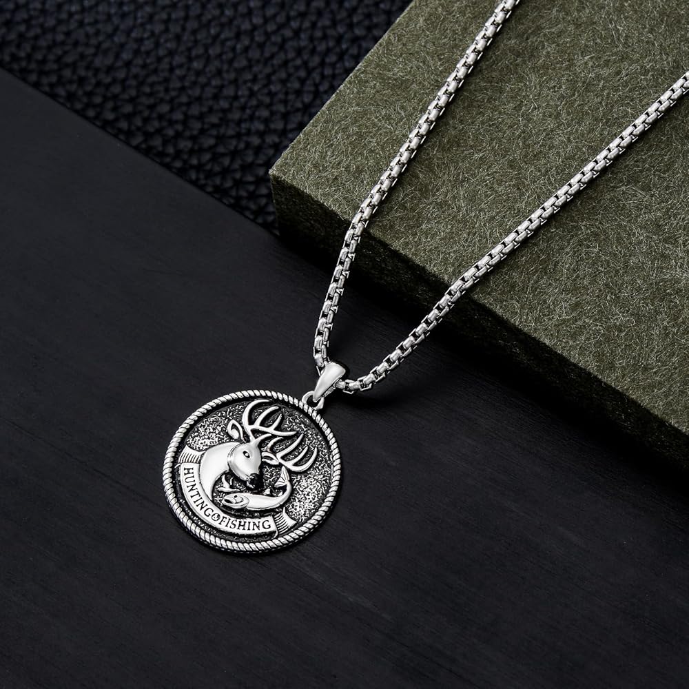 إلهام التصميم: تتكون قلادة الصيد الرجالية هذه من قرن الغزال وخطاف السمك والأسماك، مستوحاة من حب الصيد وصيد الأسماك، هذه القلادة الرجالية الفضية تجمع بين المشاعر الخارجية مع إشارة إلى الإيمان. قلادة خطاف السمك هي أفضل هدية لمحبي الصيد .