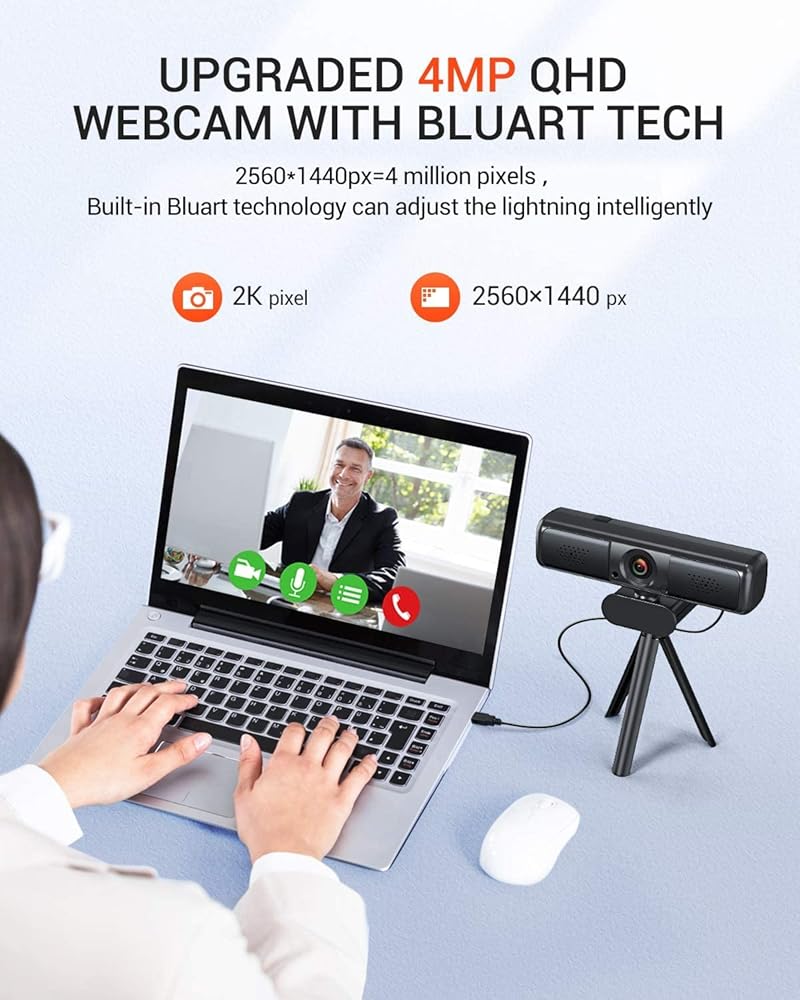 【كاميرا ويب 2K QHD】تظهر العدسات المطلية بـ 5 طبقات جودة فيديو حادة وواضحة بدقة عالية تبلغ 2560*1440 بكسل، مصممة خصيصًا لعقد مؤتمرات الفيديو الاحترافية، ومكالمات الفيديو الاجتماعية، واجتماعات التكبير/التصغير وغيرها من مقاطع الفيديو المتدفقة.