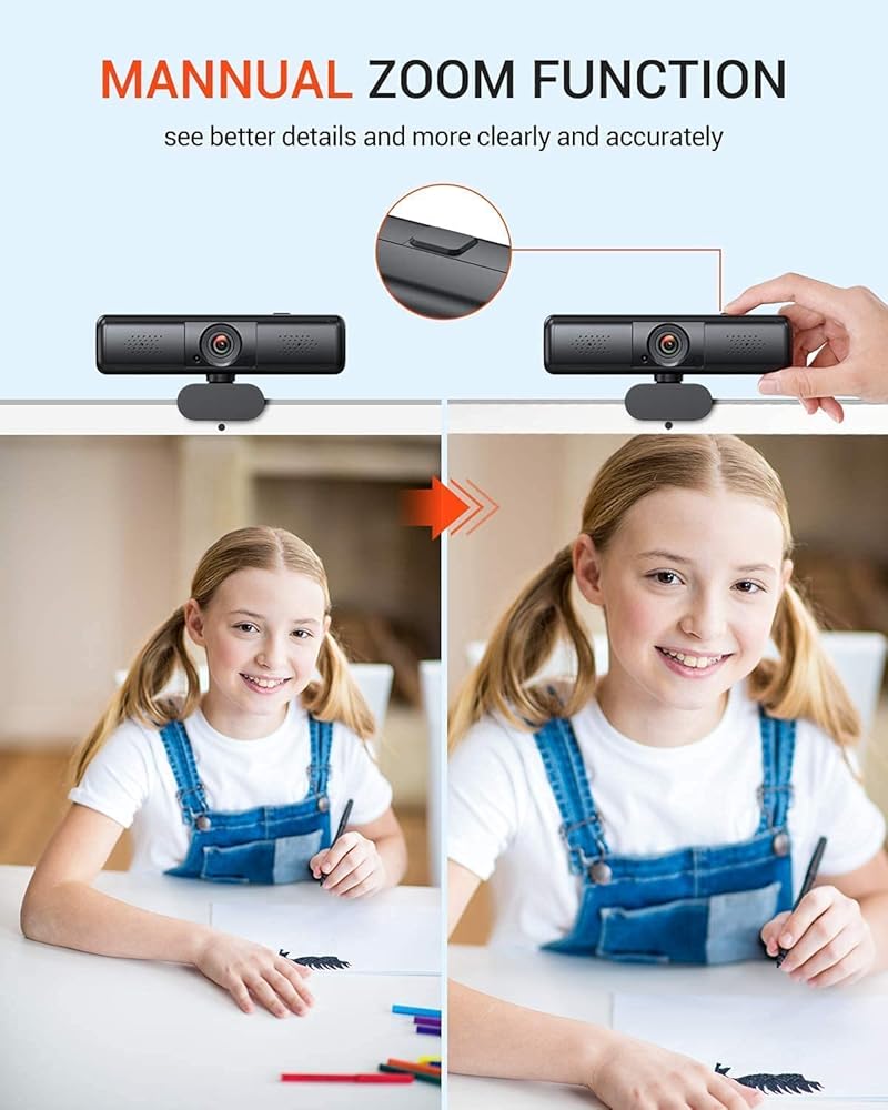 【كاميرا ويب تكبير مع ميكروفون 】 يساعدك الميكروفون المدمج في امتصاص الصوت متعدد الاتجاهات بطول 8 أمتار وميكروفون تقليل الضوضاء على التقاط صوت أكثر وضوحًا وحقيقية حتى في بيئة صاخبة. باستخدام زر التكبير الفعلي للكاميرا (10 تروس قابلة للتعديل) ويمكنك رؤية تفاصيل أفضل وأكثر وضوحًا ودقة من الصور.