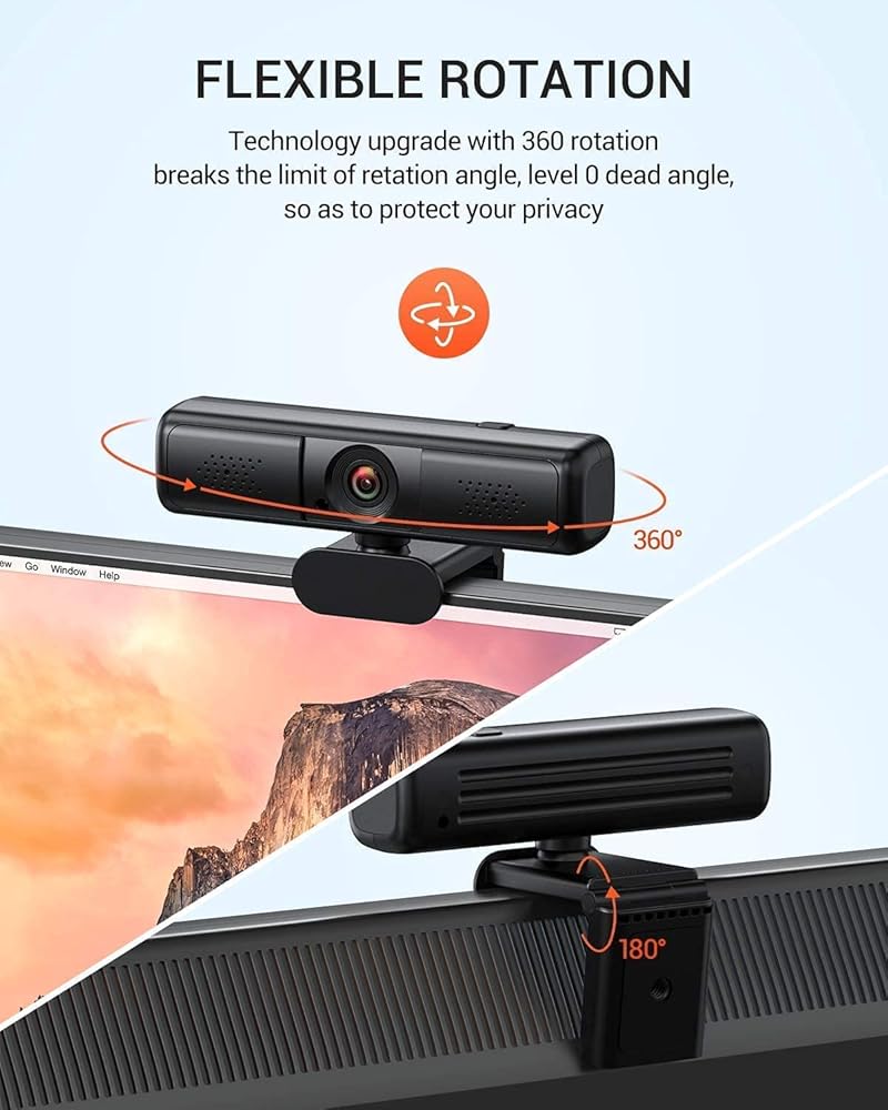 تركيب سريع ومشبك قابل للدوران 360 درجة، قم بتوصيل منفذ USB وابدأ في تشغيل كاميرا الويب USB هذه مع برنامج الفيديو. من السهل تركيبه على الجهاز باستخدام المشبك القابل للدوران، والذي يوفر زاوية رؤية واسعة 360 درجة من أي موضع أفقيًا.