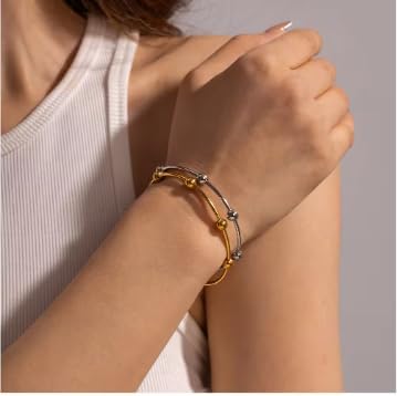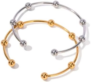أساور مقاومة للماء مطلية بالذهب عيار 18 قيراط من الفولاذ المقاوم للصدأ أساور مجوهرات مقاومة للماء على شكل كرة مستديرة مفتوحة