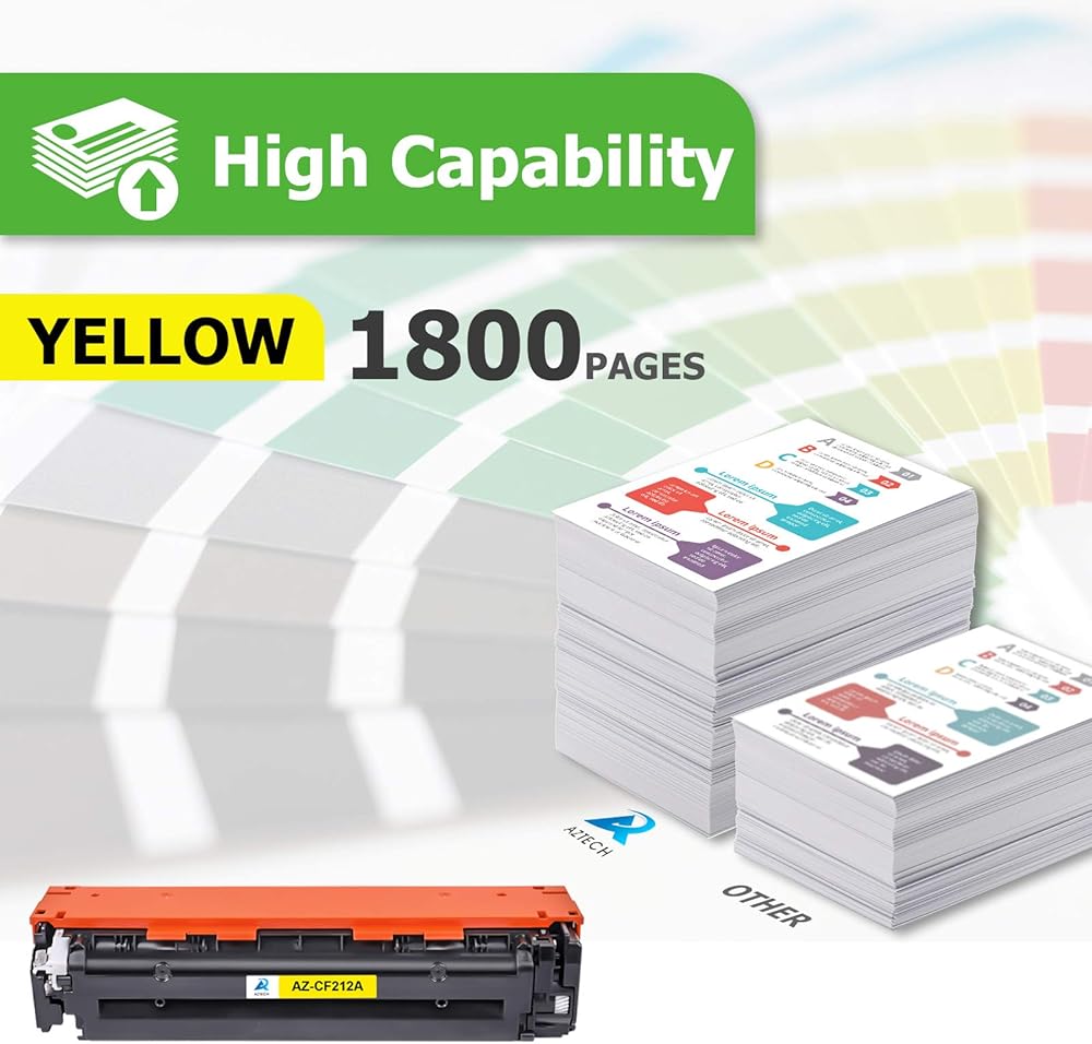 خرطوشة حبر بديلة متوافقة مع Aztech لحبر الطابعة HP 131X 131A CF212A لحبر الطابعة HP Pro 200 Color M251nw M251n MFP M276n M276nw (أصفر، عبوة واحدة)