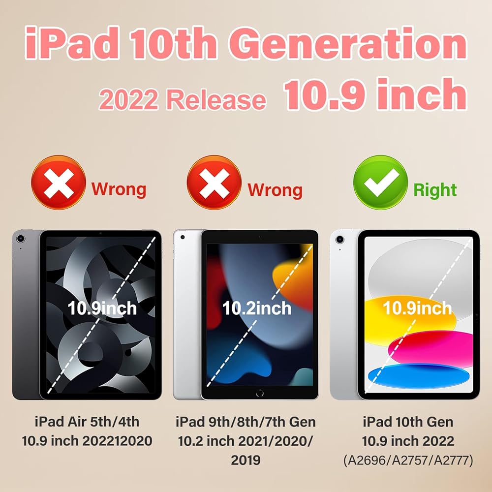 • 🌞【التوافق: حافظة مقاومة للصدمات مصممة حصريًا لجهاز iPad الجيل العاشر مقاس 10.9 بوصة (يتضمن الموديل: A2696 / A2757 / A2777) إصدار 2022. لا يناسب أجيال iPad الأخرى. [مع واقي الشاشة]