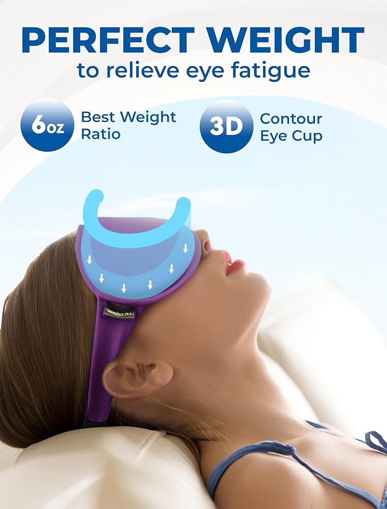 • تم تصميم قناع العين هذا خصيصًا للأشخاص الذين ينامون على الجانب، ويتميز بتصميم يخفف التوتر لتهدئة الصدغين، كما أنه صديق للأذنين وصديق للأنف.
