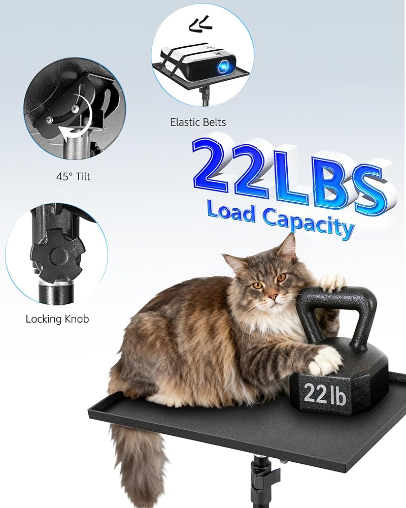 حامل ثلاثي القوائم لجهاز العرض Lusweimi، حامل كمبيوتر محمول قابل للتعديل بارتفاع 56 بوصة مع صينية مقاس 16 × 11 بوصة، حامل جهاز عرض محمول، حامل أرضي ثابت طويل القامة للمكتب والمنزل والخارج والاستوديو ورفوف DJ