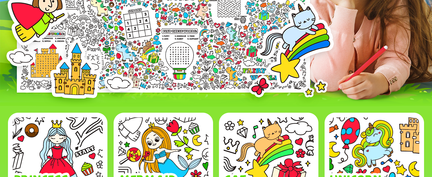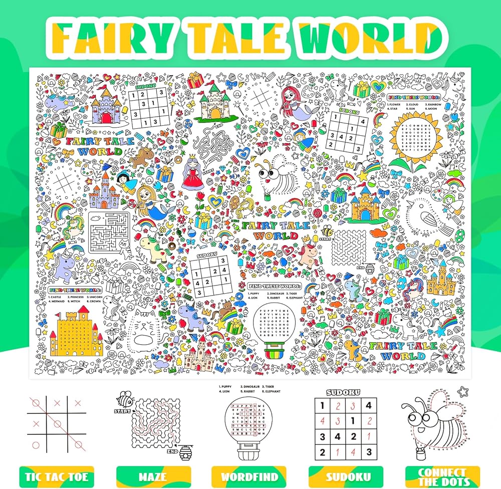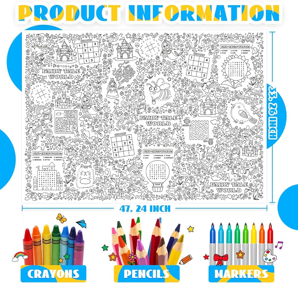 🌺🌺【تصميم ملصق تلوين فريد من نوعه للعبة تريفيا】لا يمكن تلوين مفارش المائدة الورقية ذات طابع أحادي القرن الخيالي فحسب، بل يمكن استخدامها أيضًا في أنشطة الألعاب المختلفة، بما في ذلك المتاهات، وتيك تاك تو، وسودوكو، وربط الأنماط والبحث عن الكلمات، والتي لا يمكن أن تحفز اهتمام الأطفال فحسب، بل تساعد أيضًا على تنمية خيال وإبداع الطلاب والأطفال.
