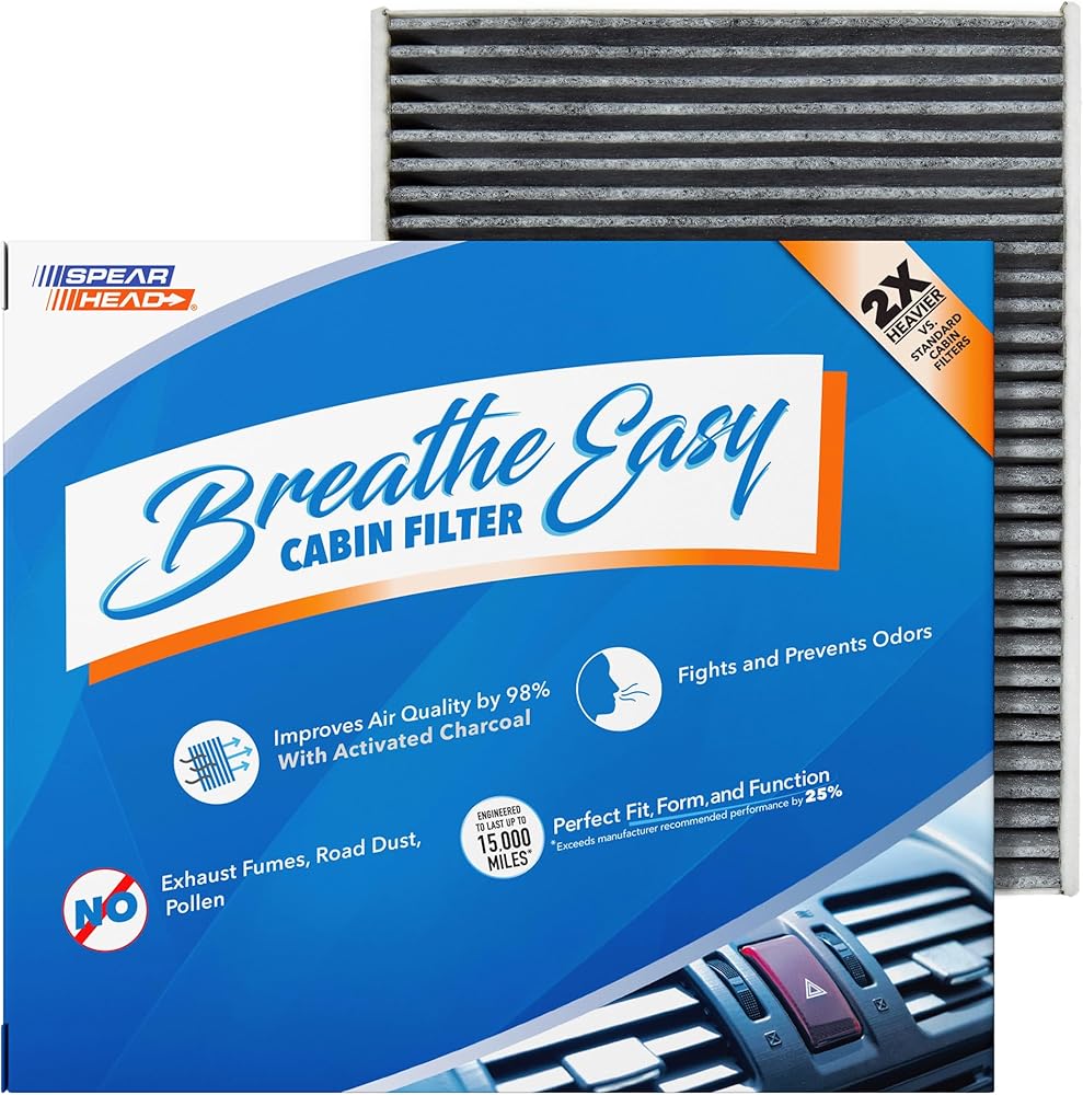 عمر أطول بنسبة تصل إلى 25%: منسوجة بدقة ومملوءة بالكربون المنشط بغلاف جوز الهند الحقيقي، تم تصميم مرشحات هواء المقصورة Breathe Easy الخاصة بنا لتدوم حتى 15000 ميل، أطول بنسبة 25% من الأداء القياسي الذي يبلغ 12000 ميل
