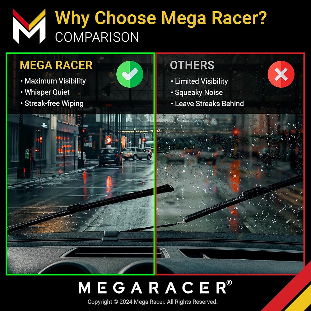 ☀ رؤية عالية - أبهرك بشفرات المساحات الوظيفية مقاس 26 بوصة و16 بوصة. شفرات المساحات الخاصة بنا مصنوعة من الفولاذ ذو الذاكرة عالي الكربون لتأمين شكل منحني عميق في مكانه. من المؤكد أن ملامسة الزجاج الأمامي السلس تمنحك رؤية كاملة في كل مسحة!