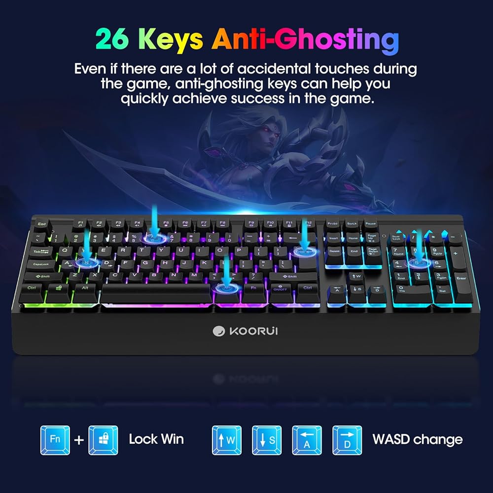 🎁 12 مفتاحًا للوسائط المتعددة و26 مفتاحًا مضادًا للظلال - يمكن لـ FN+F1~F12 الموجود أعلى لوحة المفاتيح كاملة الحجم أن يجمع بين 12 وظيفة وسائط متعددة. (ملاحظة: مفتاح الوسائط المتعددة غير متوفر على نظام Mac). بغض النظر عن مدى سرعة الكتابة تتيح لوحة مفاتيح الألعاب المضادة للظلال المكونة من 26 مفتاحًا لجميع المفاتيح العمل في وقت واحد.