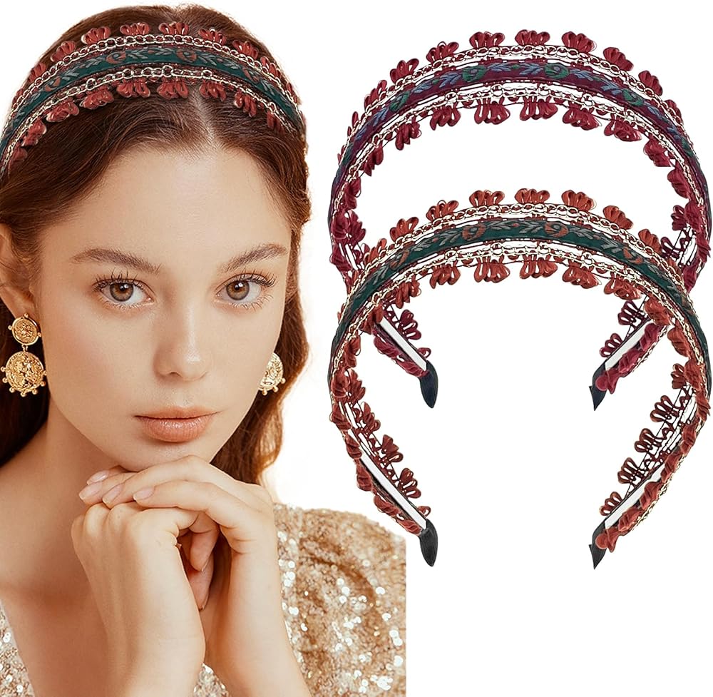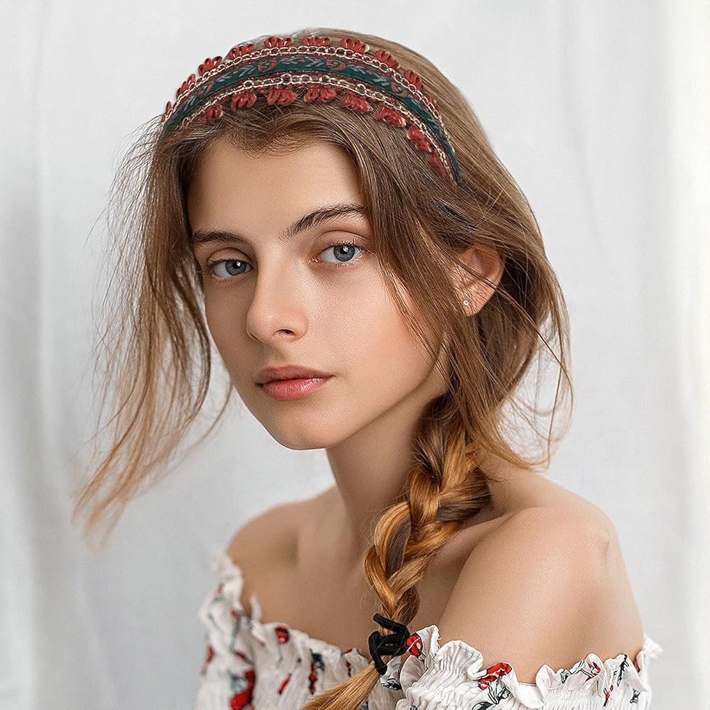 【Boho Accessory】Embroidery headbands can be used not only for dressing up but also for adding charm to daily life. Easy to hold your hair back and keep your forehead dry, well-matched with your daily look, and create various hairstyles.