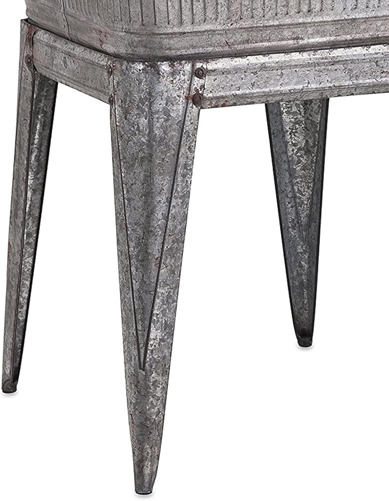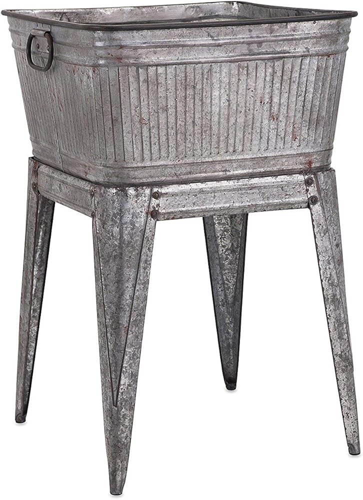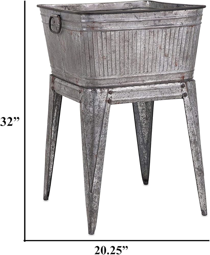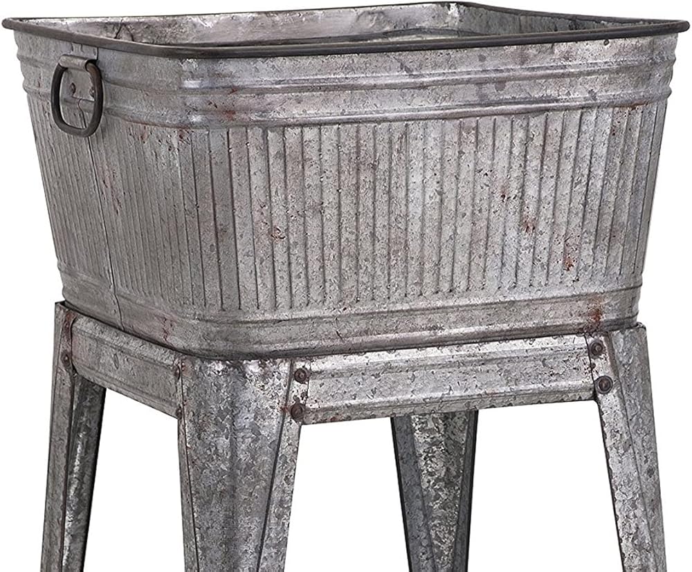 Bring home this unique Multi-Functional Galvanized Metal Tub on Stand in your home and make a great everyday use. Galvanized metal construction means the tub is built to last. Supported by sleek angled legs, the tub features side handles that help for easy shifting of its positions. Keep around your garden or workshop to display your most beautiful flowers and greenery or keep beverages ice cold in this handy tub. You can use it as a planter, wine chiller or as a sink.
