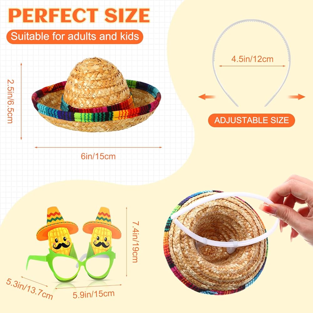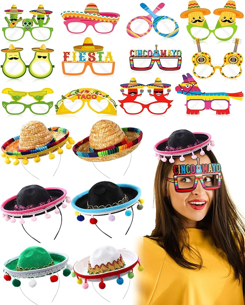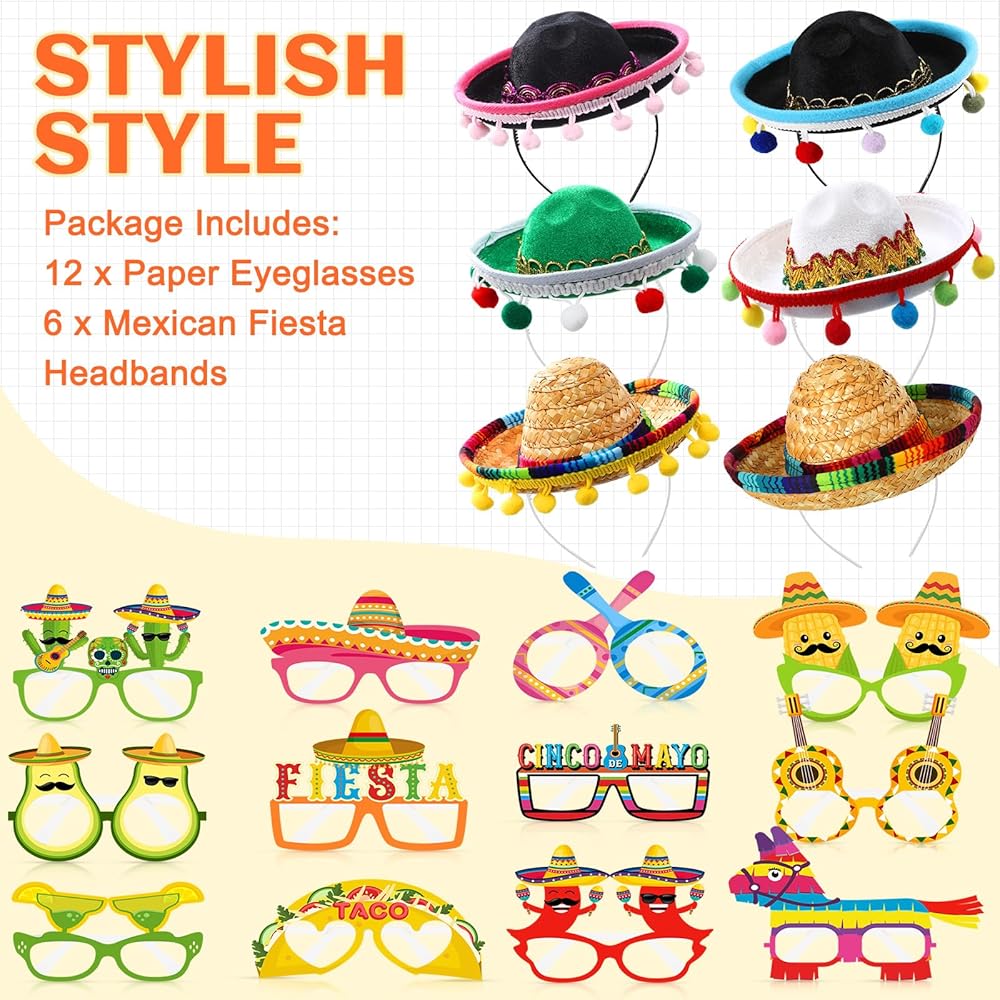 18 قطعة قبعات حفلات العيد والنظارات لوازم صغيرة سمبريرو قبعة Headbands سينكو دي مايو المكسيكي موضوع الزينة